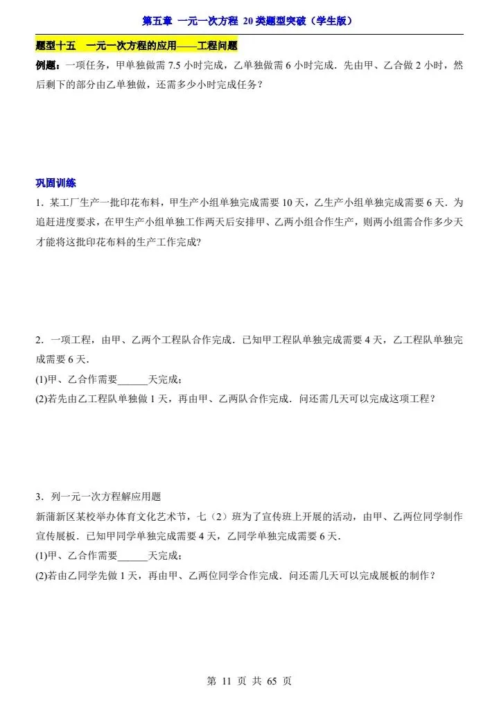 【华师版】七年级下册数学·一元一次方程20类题型突破(含答案) 完整可打印