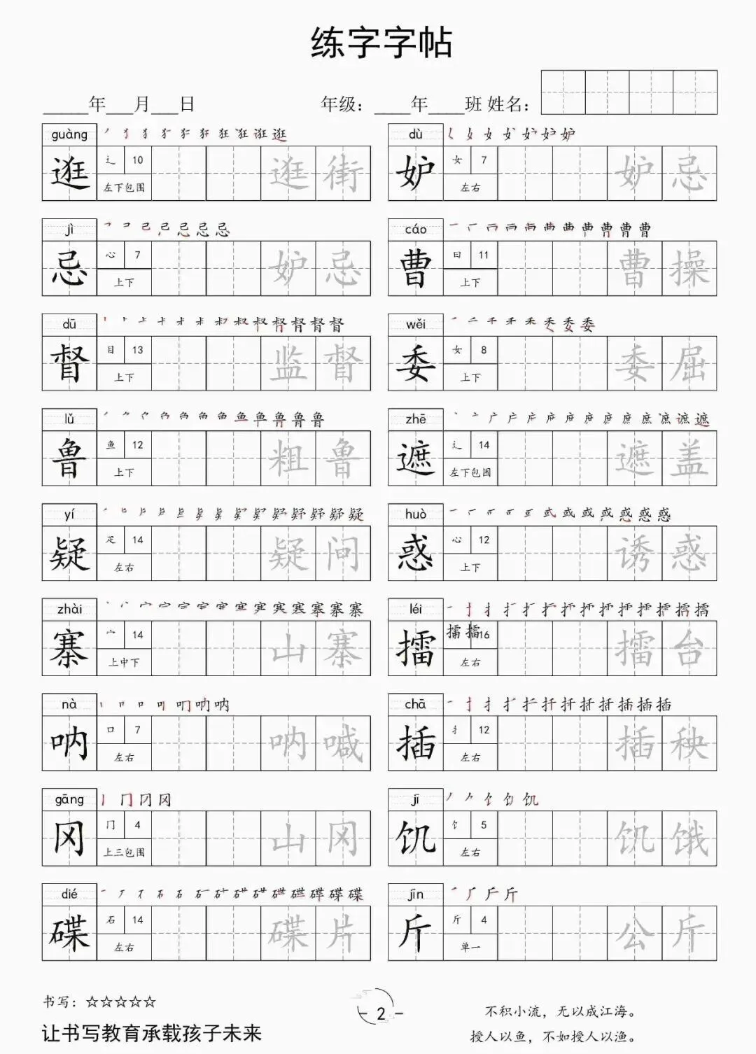 今天给大家分享的是五下语文写字表字帖,紧扣五下语文写字表核心生字,从笔画笔顺到间架结构,层层拆解书写要点,孩子练习的同时还能巩固课内生字,练字学习两不误。不管是日常课后巩固,还是假期集中提升,都能让孩子在规范书写中掌握汉字精髓,慢慢练就一手端正楷书。