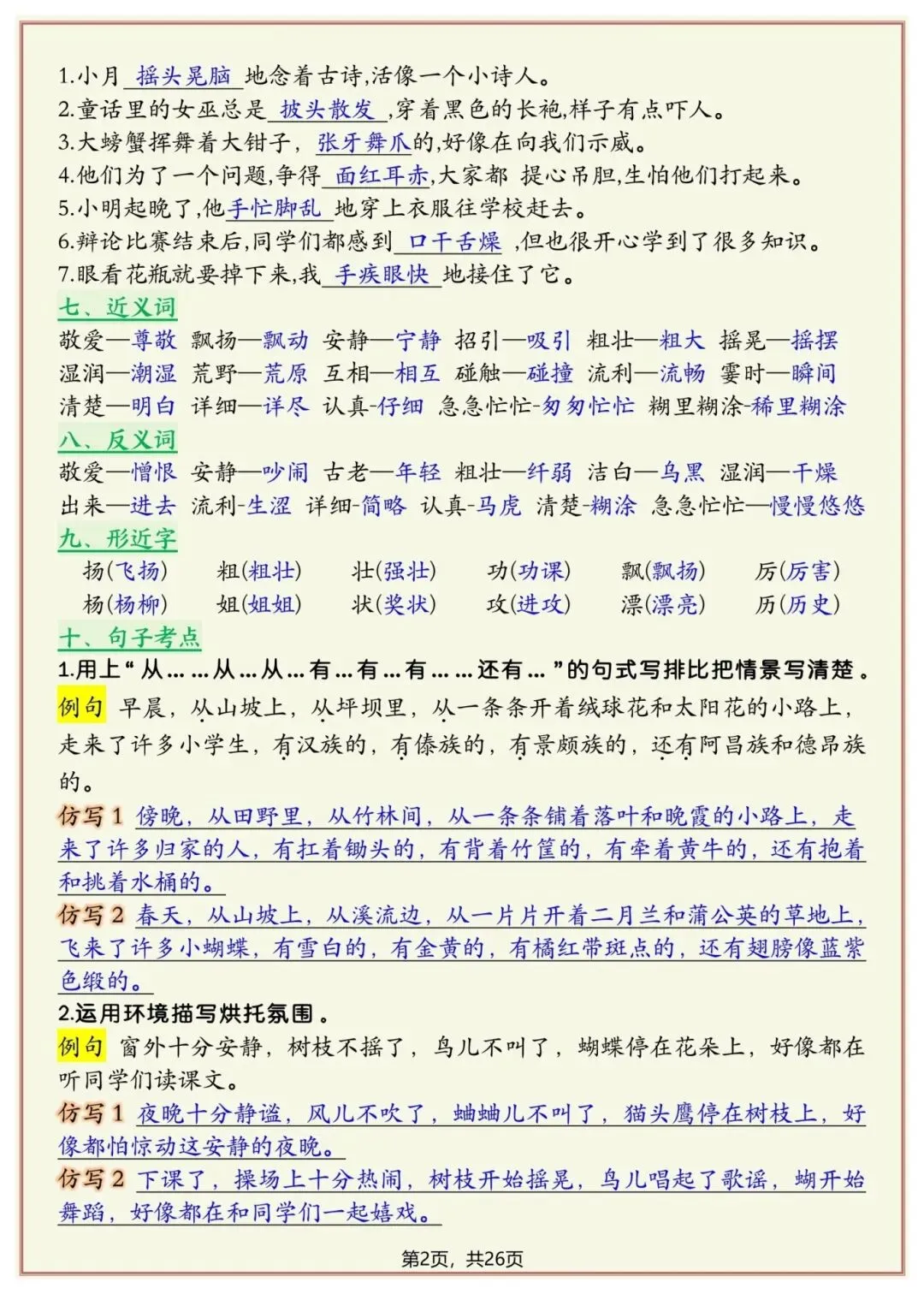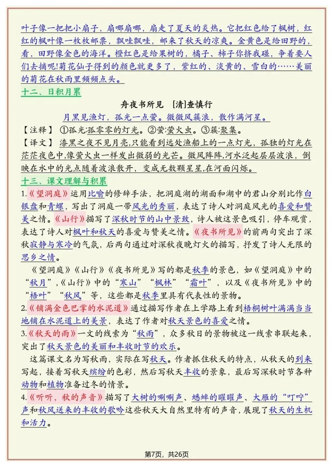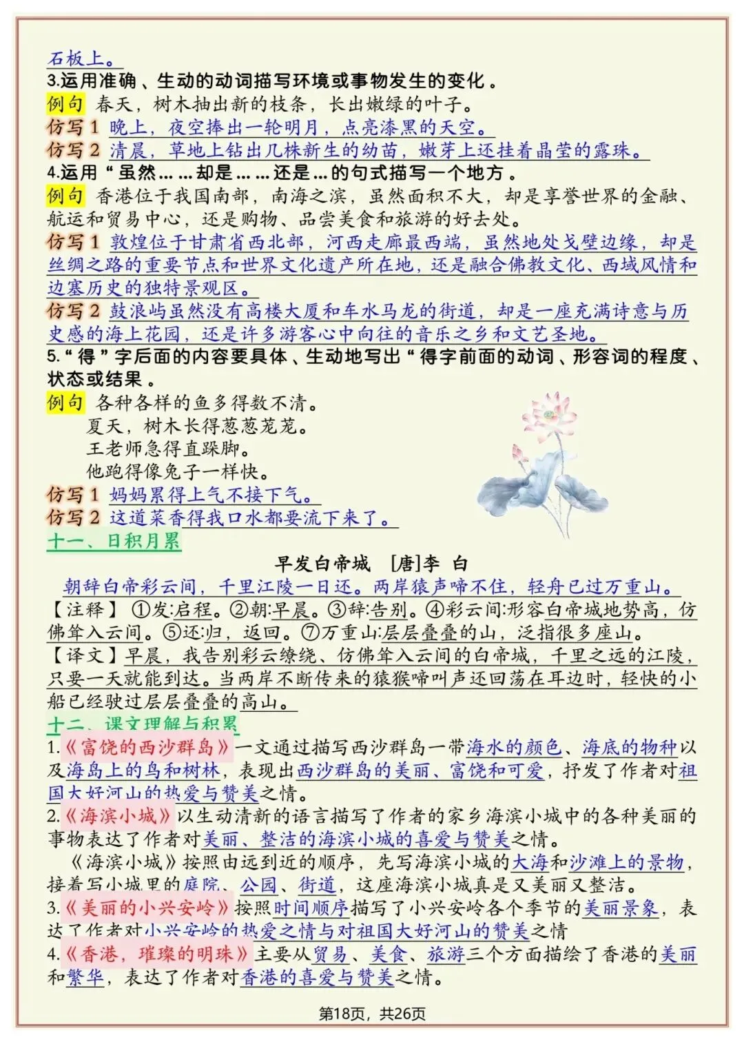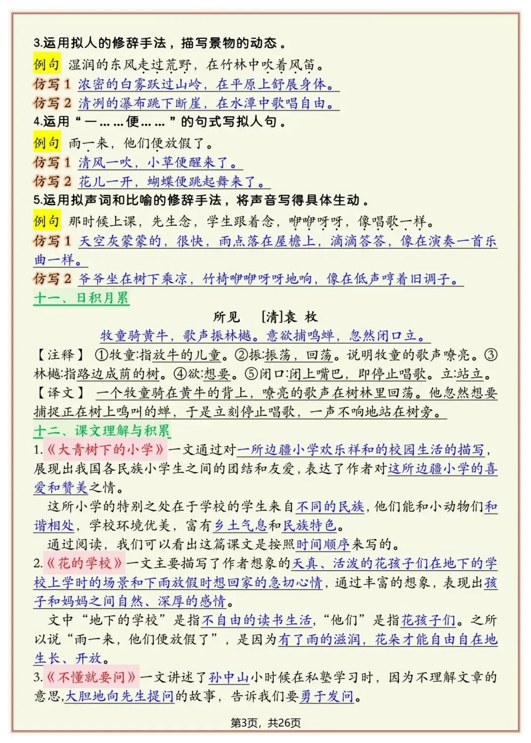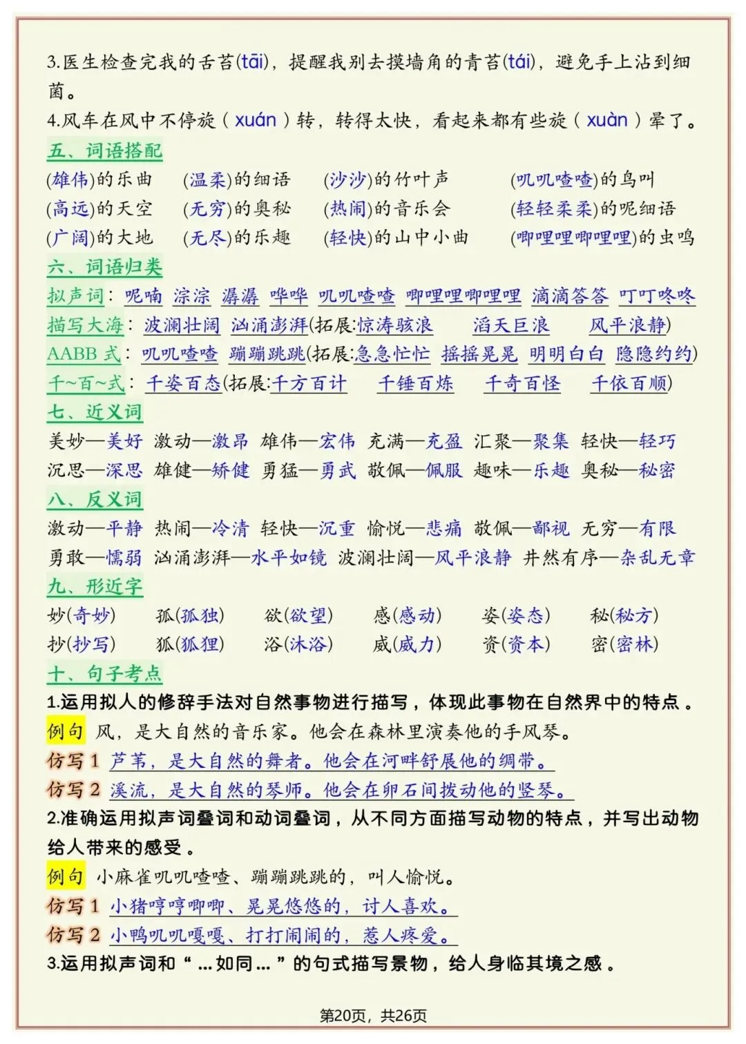 三年级上册语文1-8单元高频考点总结单,电子版可下载打印
