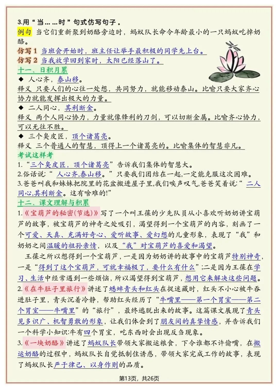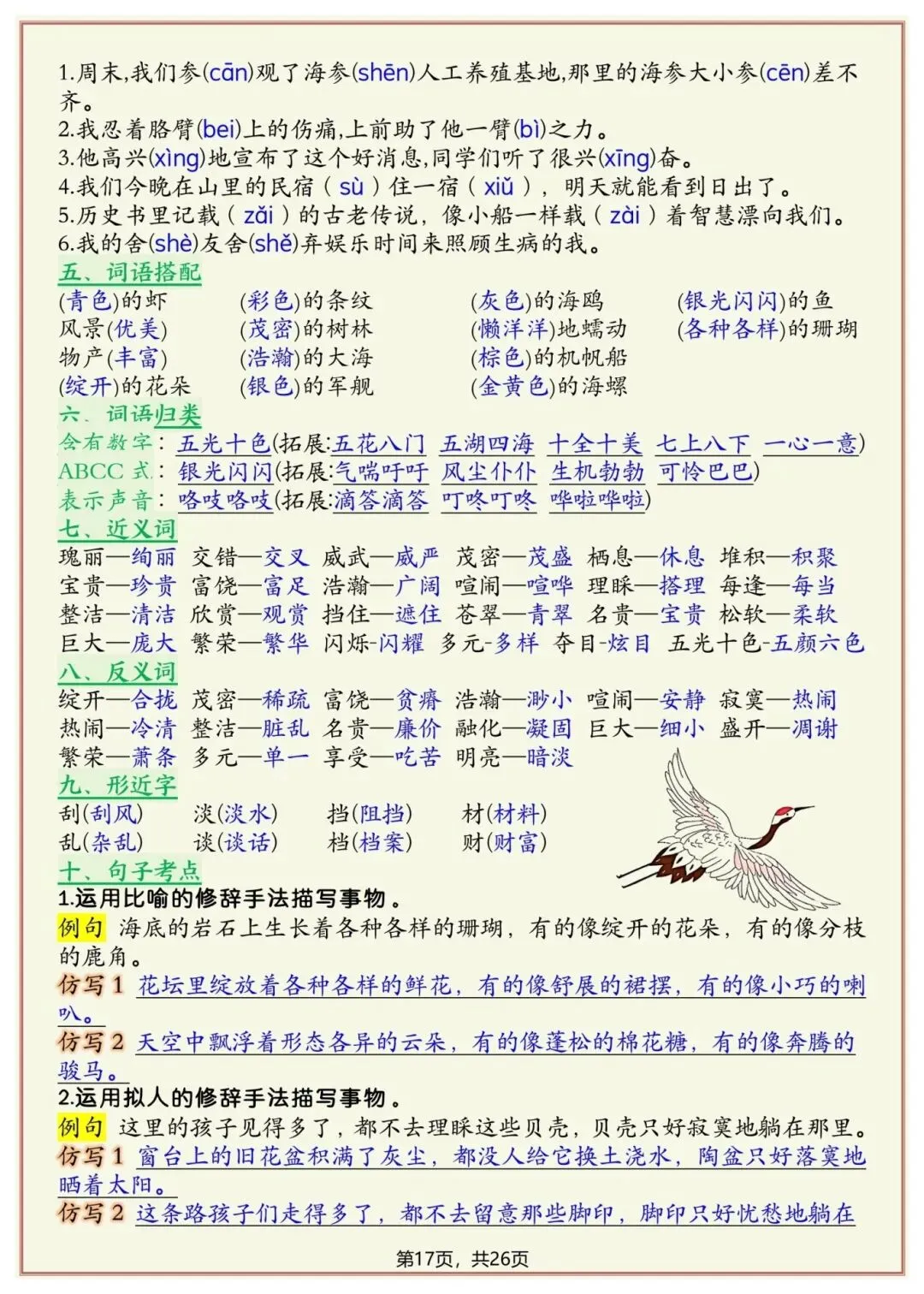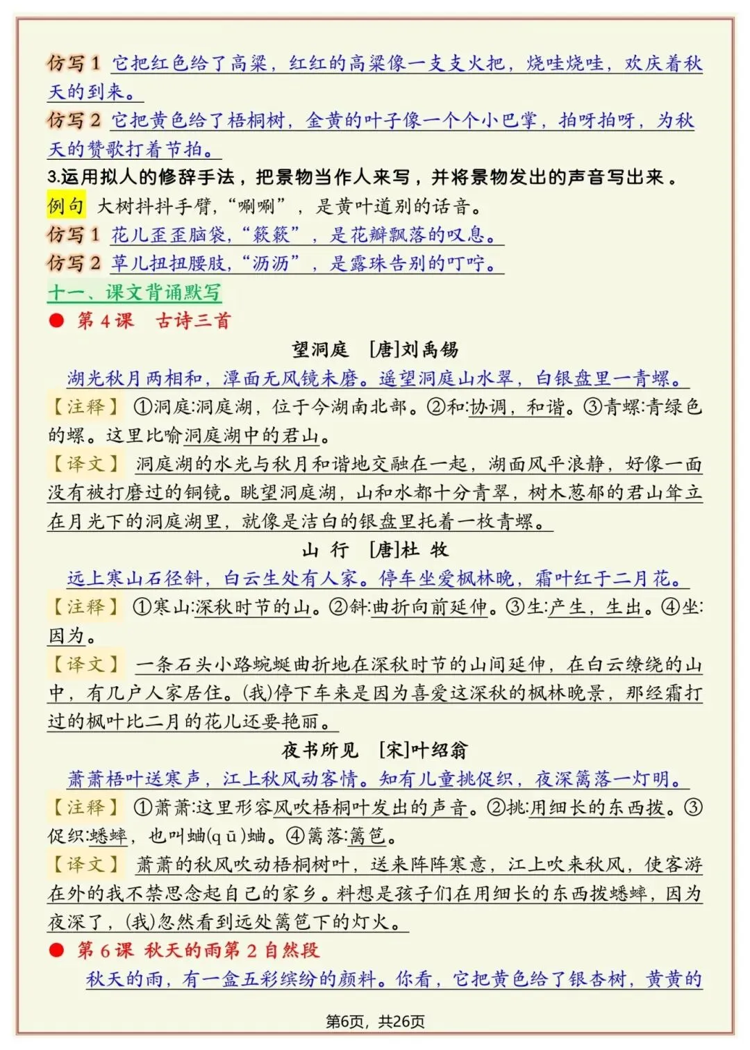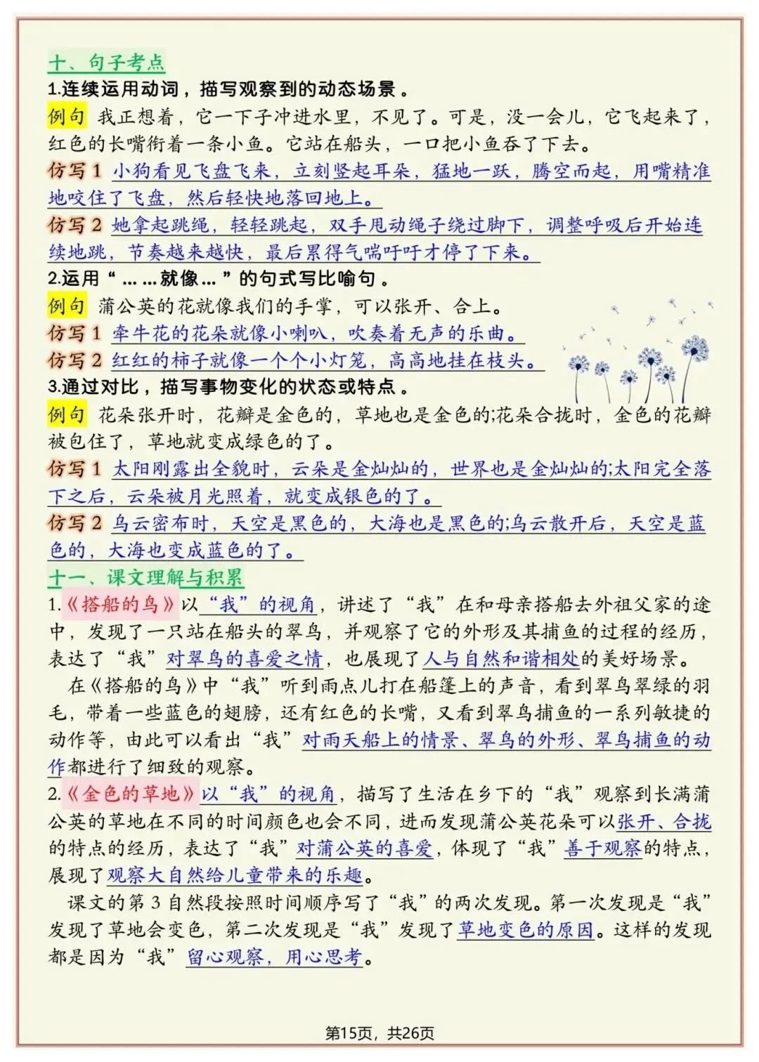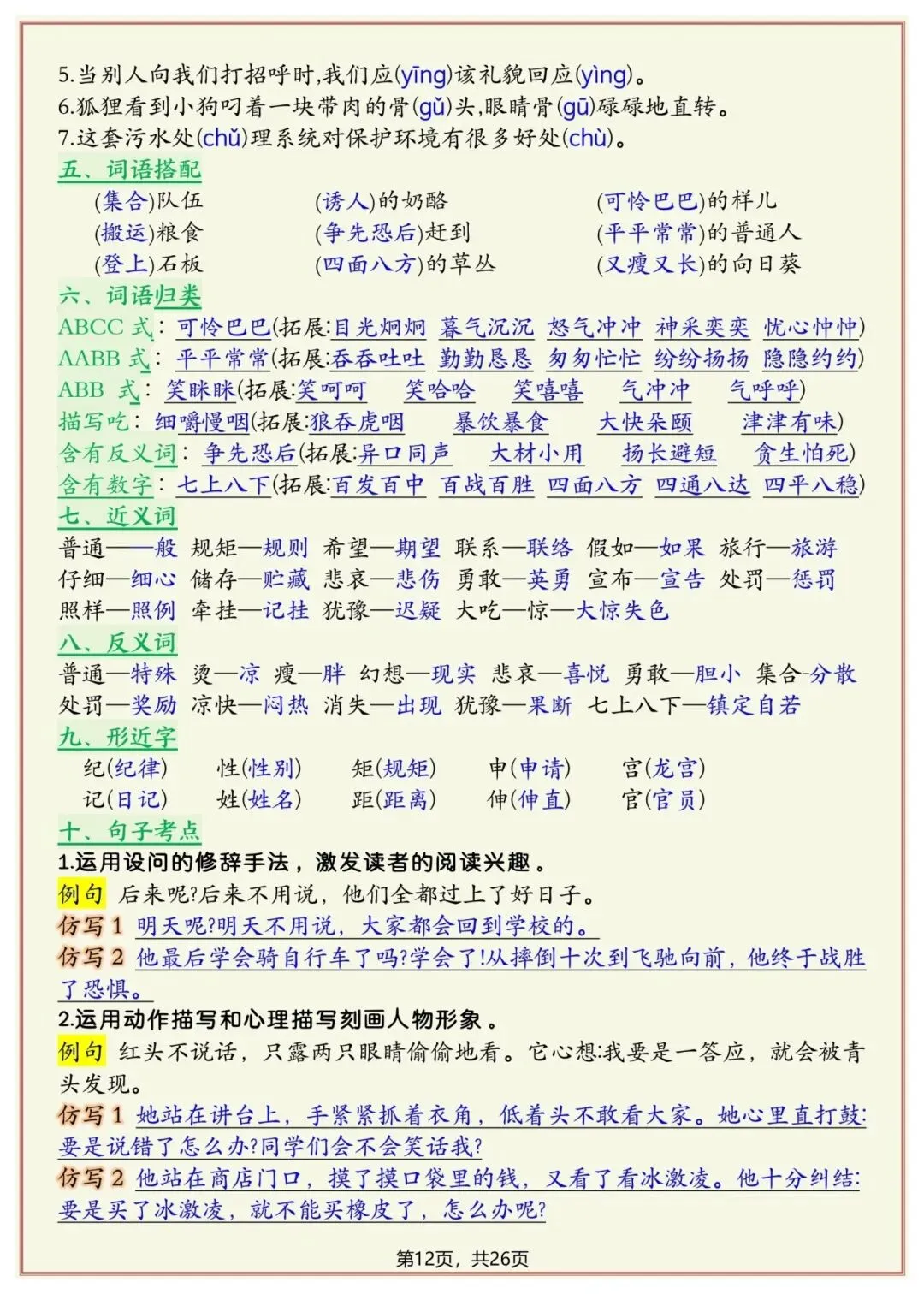 三年级上册语文1-8单元高频考点总结单,电子版可下载打印