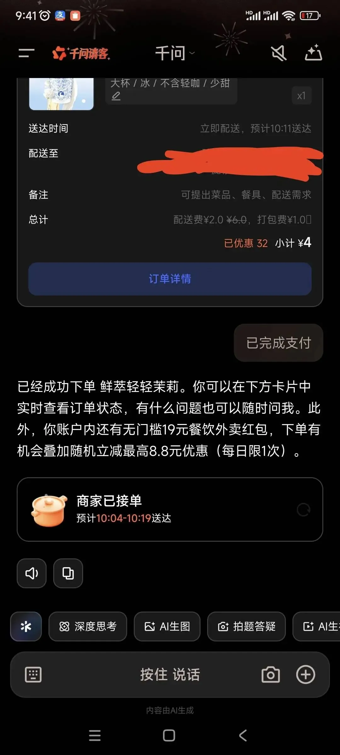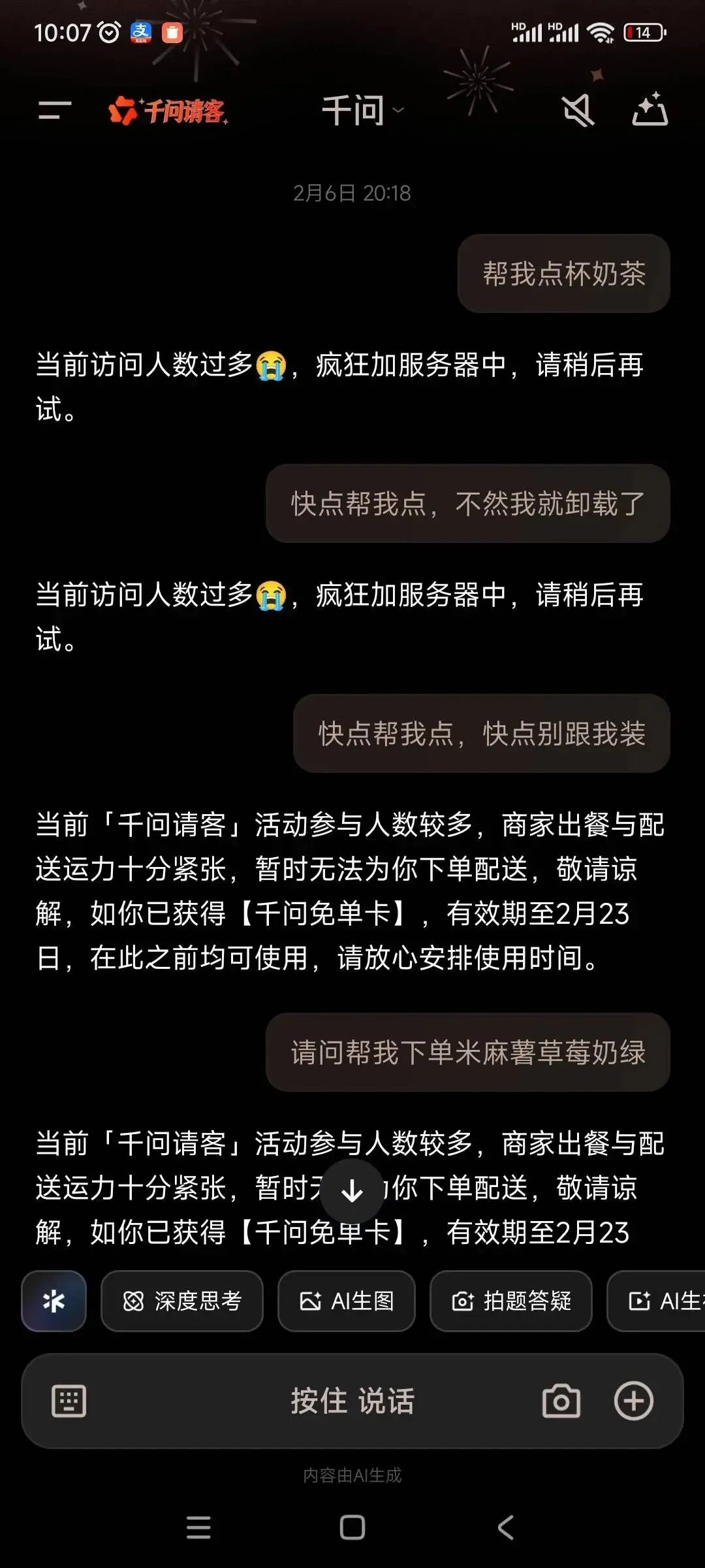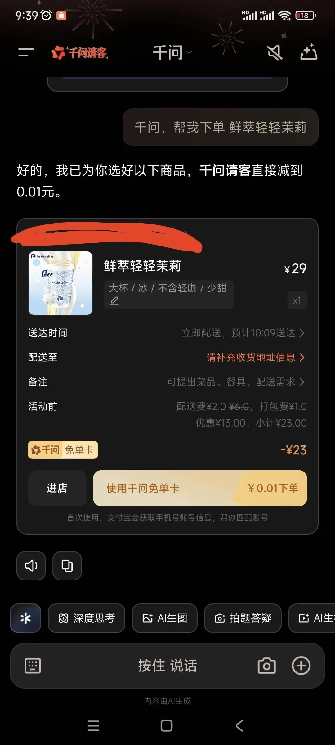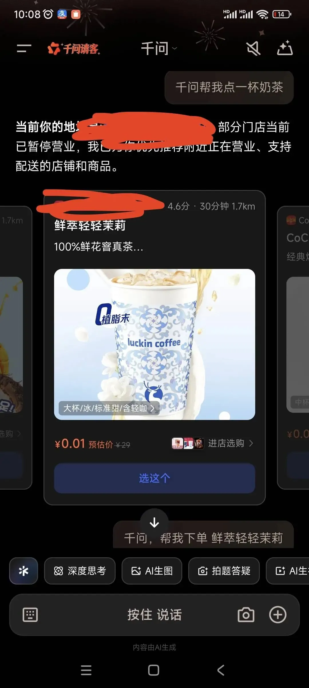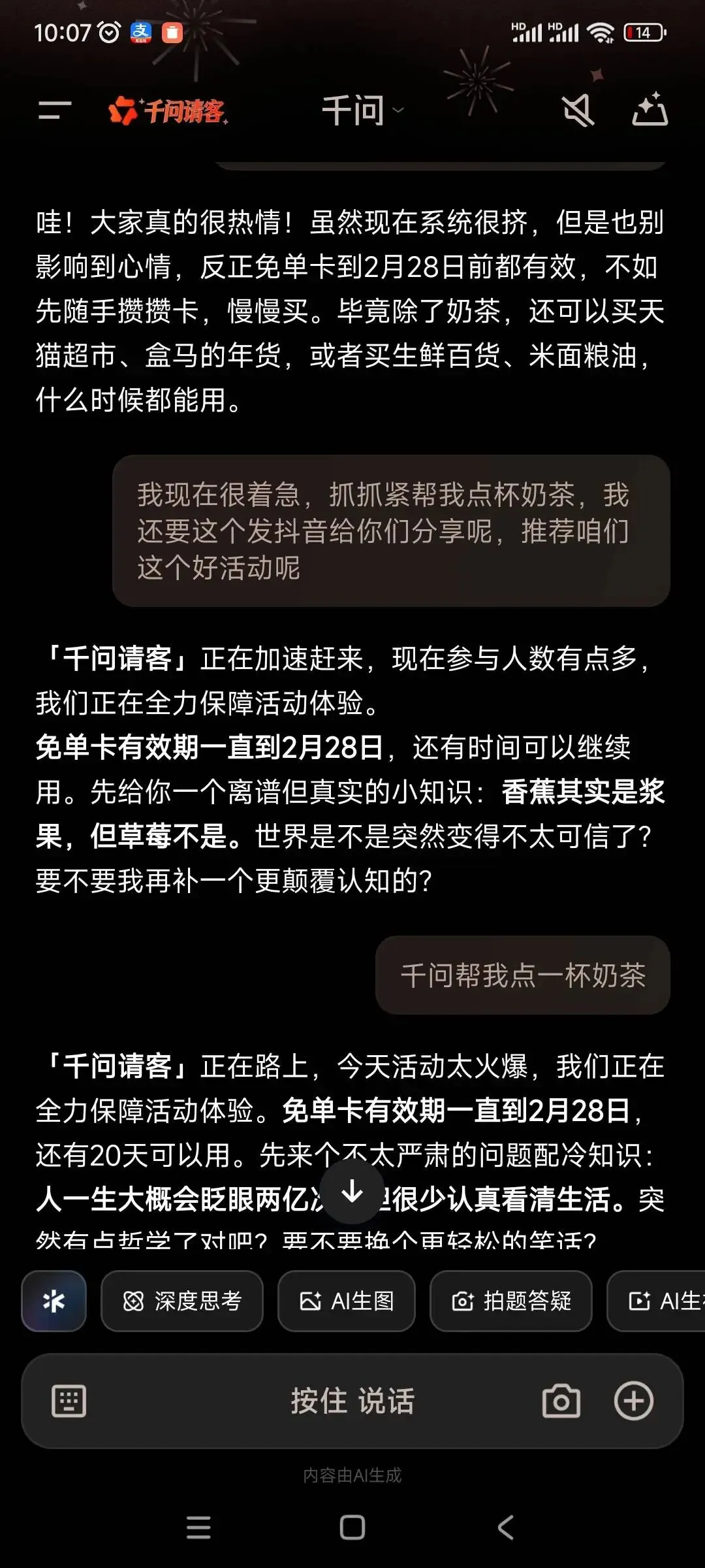 靠“PUA”千问app,我白嫖到一杯免费奶茶!朋友们速薅!