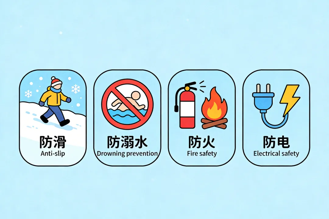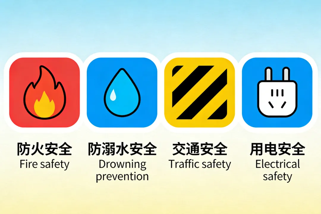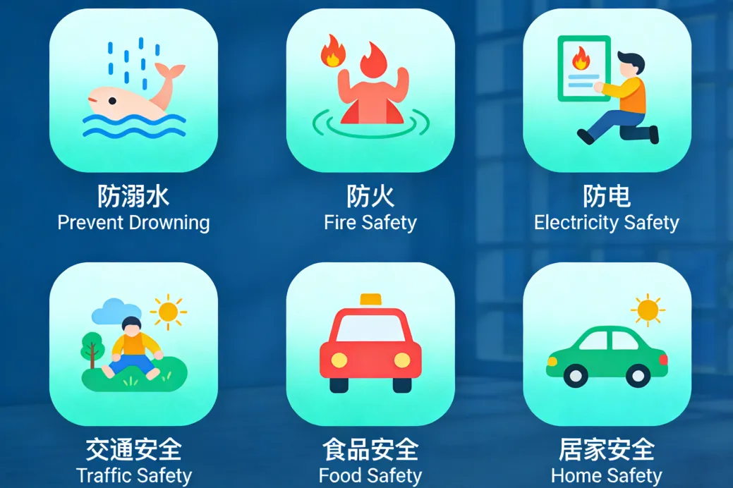 寒假安全无小事,常规防护记心间。我们将交通、消防、网络三大核心安全要点,搭配英文规范表达,让孩子在牢记安全准则的同时,积累实用英语词汇和句式,把安全提醒变成外语小课堂,让传统安全教育焕发外语新活力。