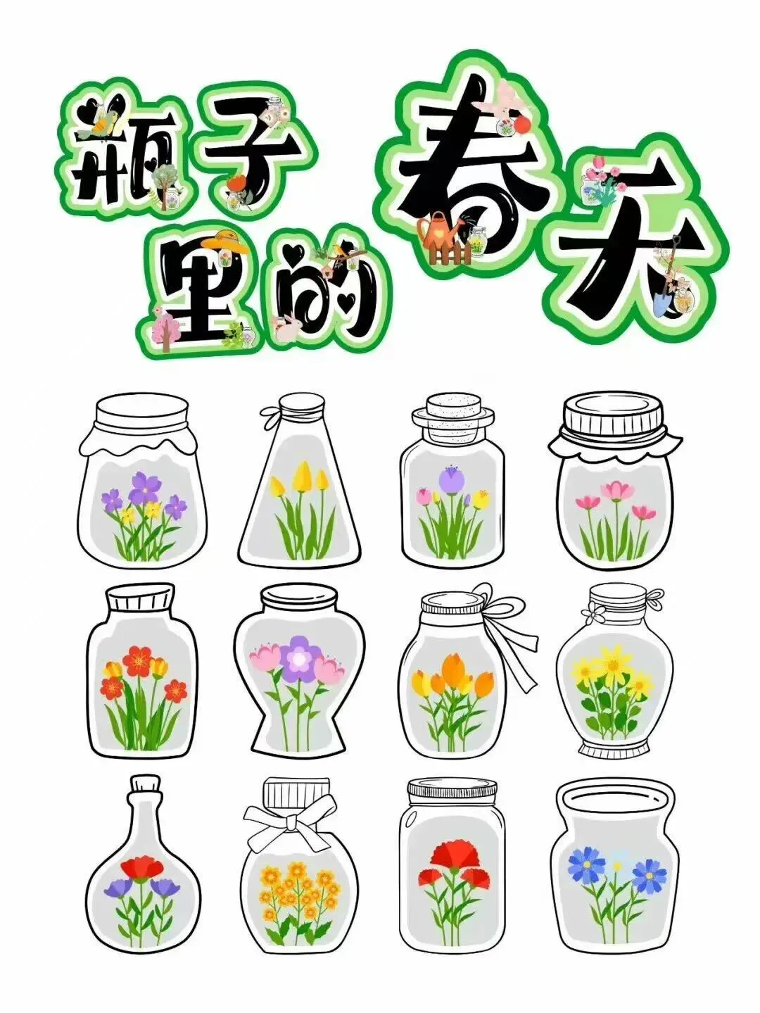 【春季主题环创】瓶子里的春天 素材可直接打印