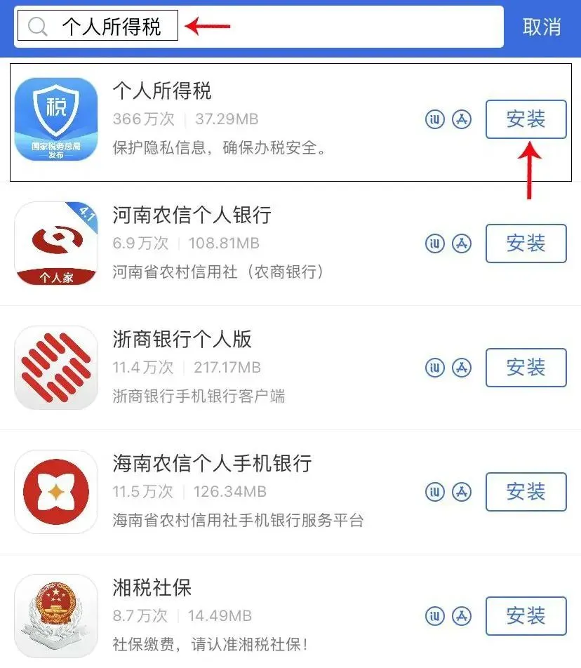 第一步 按住二维码,识别之后打开“个人所得税”app链接,点击下载安装;