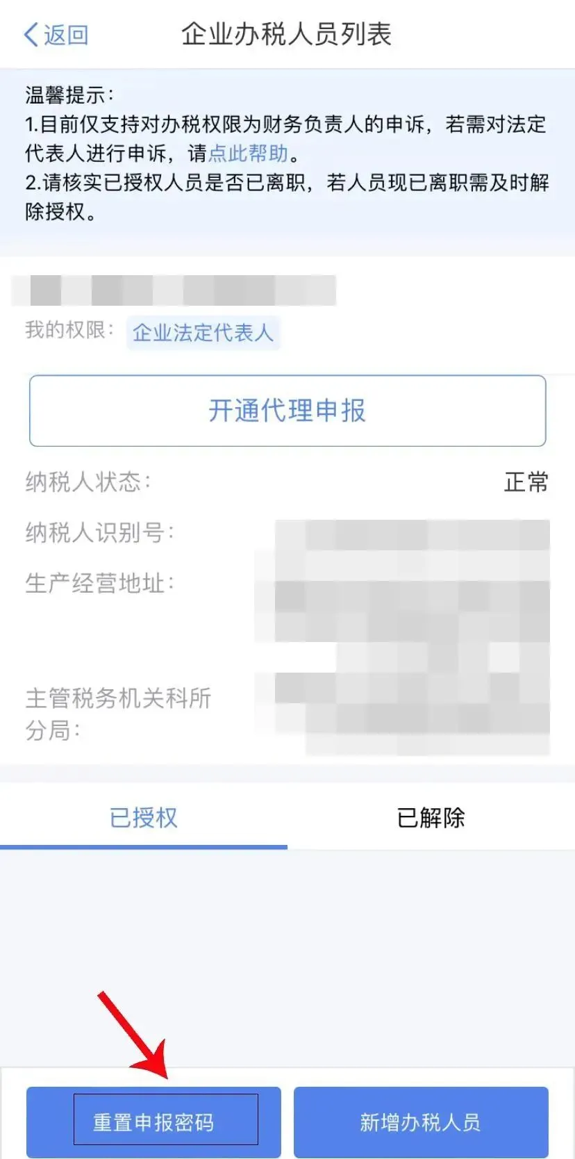 第八步 找到需要重置个税申报密码的对应公司名,点击进去;