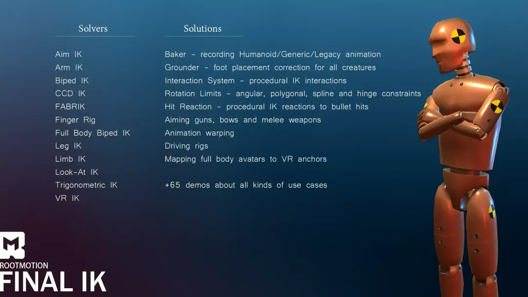 如果你正在做角色驱动类游戏、动作游戏、射击游戏或 VR 项目,Final IK 基本可以覆盖所有 IK 场景需求。