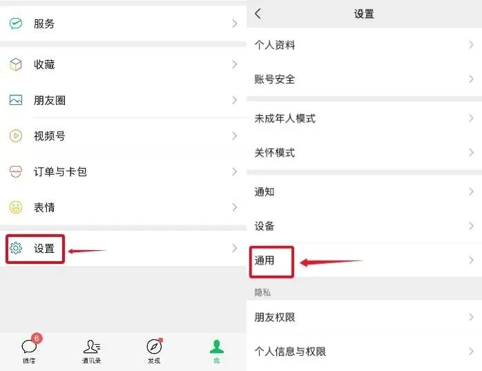 1、打开微信我的界面,点击设置。进入设置界面,然后点击通用。