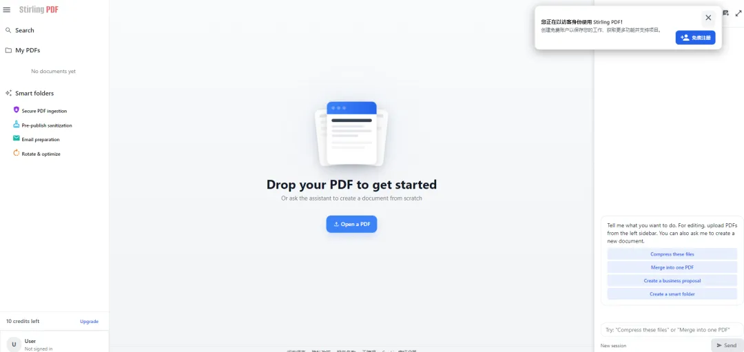 Stirling-PDF 是一个开源的、基于 Web 的全功能本地 PDF 工具箱,支持离线运行,提供 PDF 编辑、转换、合并、拆分、压缩、OCR 识别等核心功能。项目采用模块化设计,通过前后端分离架构实现高扩展性,适合个人用户和企业级部署。