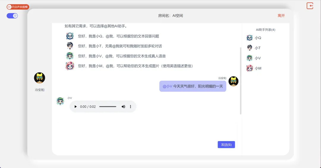 功能矩阵:对标行业功能标准,踩中 AI 融合 IM 的行业趋势随着 AI 技术与 IM 工具的深度融合(参考 AI+IM 应用实践报告),单一通讯功能已无法满足用户需求,AQChat 对标行业 IM 工具的功能标准,同时创新融入 AI 能力,构建了 “基础 IM 通讯 + 智能辅助交互” 的一体化解决方案:1. 全覆盖的基础 IM 功能项目的基础 IM 功能完全覆盖行业标准,同时优化了多项细节体验:消息类型全覆盖:支持文本、表情包、图片、文件、音频、视频等多类型消息收发,可查看图片大图、下载文件,覆盖日常交流、办公协作等全场景,符合 IM 工具的基础功能要求;消息可靠性保障:具备消息状态反馈(发送中 / 成功 / 失败)、失败重发、撤回编辑、新消息提示音等实用能力,保障消息收发的稳定性与便捷性,解决传统 IM 消息丢失、状态不明确的痛点;群聊管理与个性化适配:提供群成员上下线通知、@用户高亮提醒,支持高亮 / 黑暗主题切换,适配不同用户的使用习惯,满足社群沟通的管理与个性化需求。房间与匿名机制:支持房间创建、加入与匿名聊天模式,支持实时查看房间内成员列表、页面刷新后状态同步、成员离线通知等功能2. 多能力 AI 助手,引领 IM 智能交互新范式支持自由选择启用关闭AI功能,区分纯即时通讯模式、AI智能聊天内置主流大模型能力:已接入通义千问MAX、ChatTTS、Qwen2-72B-Instruct等主流AI大模型