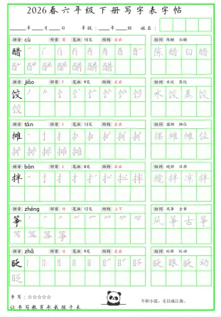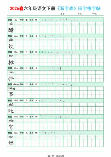 全网最全小学语文写字表字帖,1—6年级全部,高清PDF版本,可直接下载打印,需要的家长们请抓紧转存,以防资源失效。
