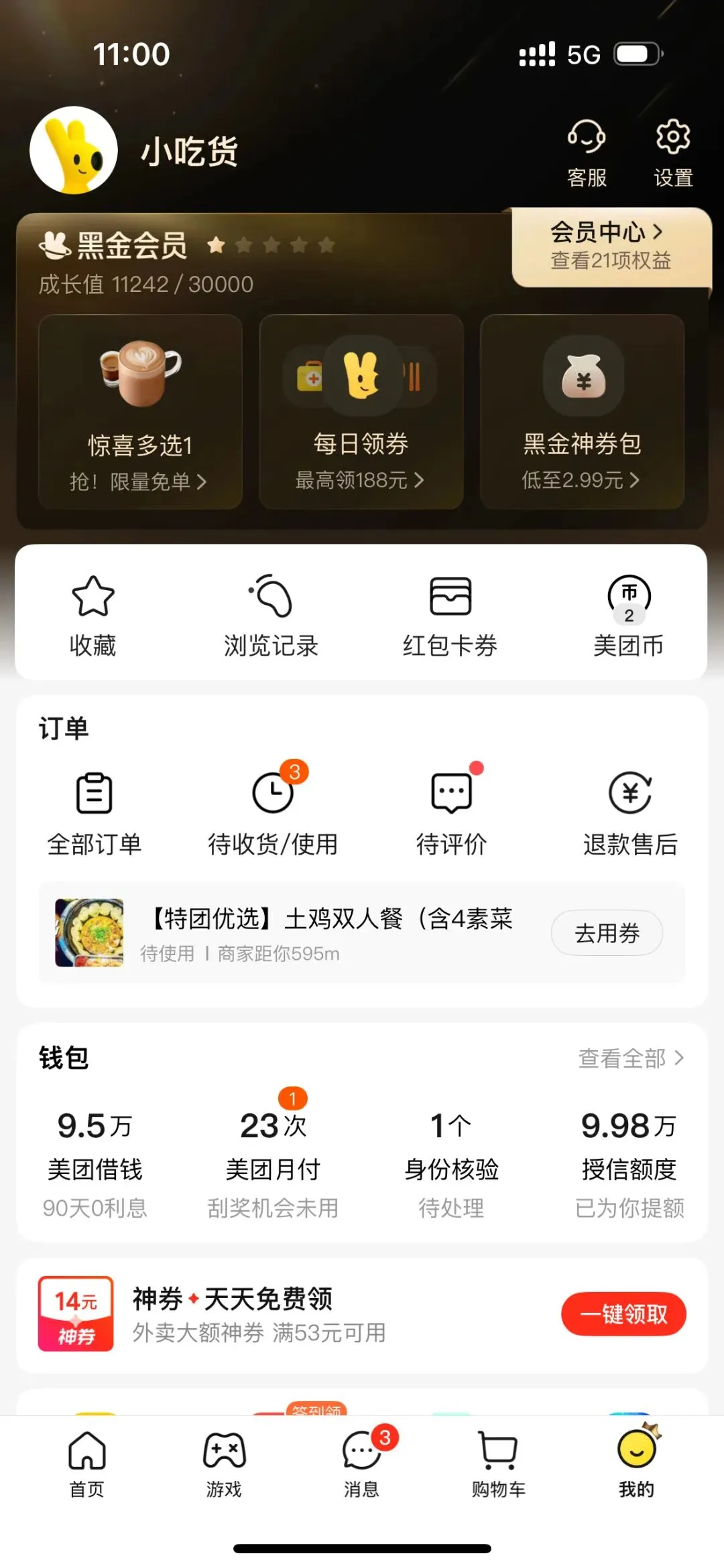 美团app做任务领星巴克大杯外卖券