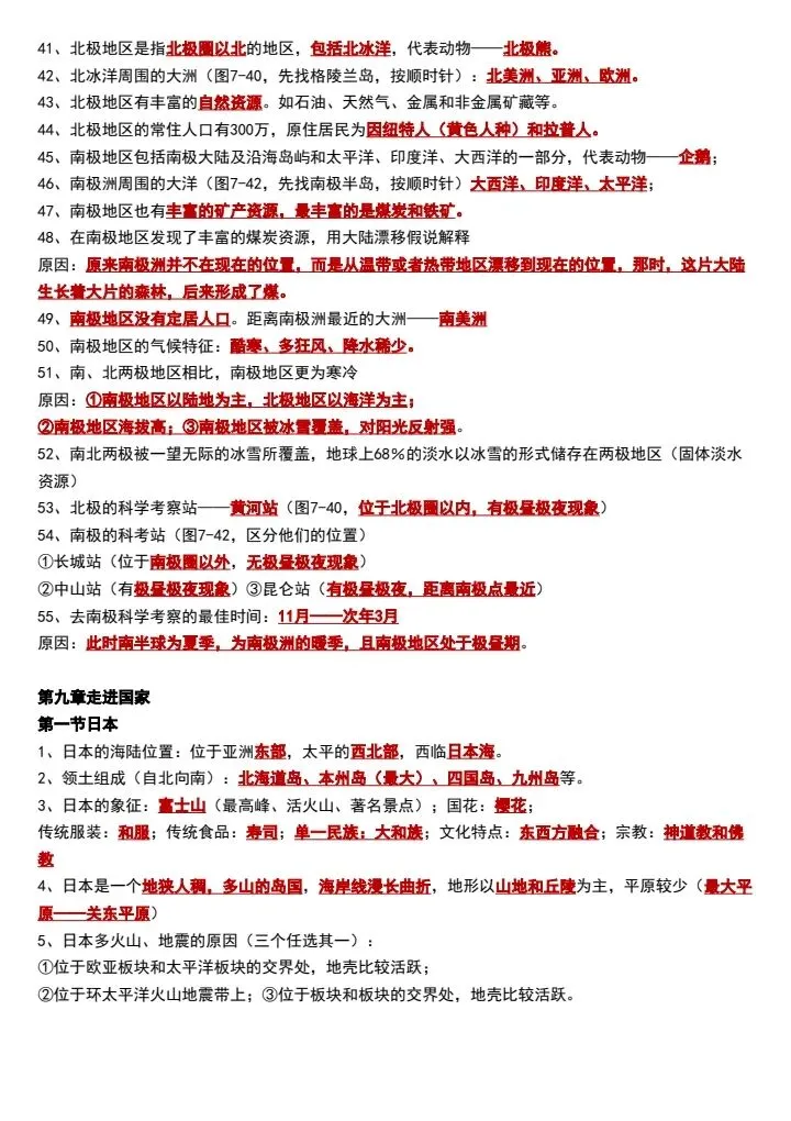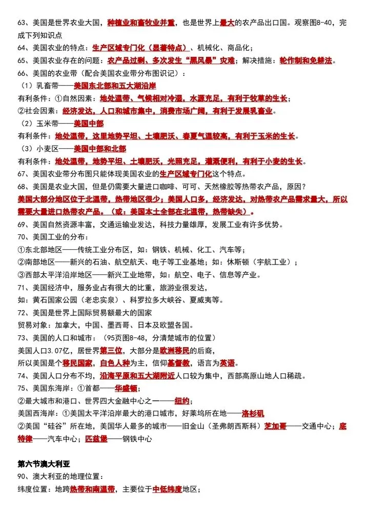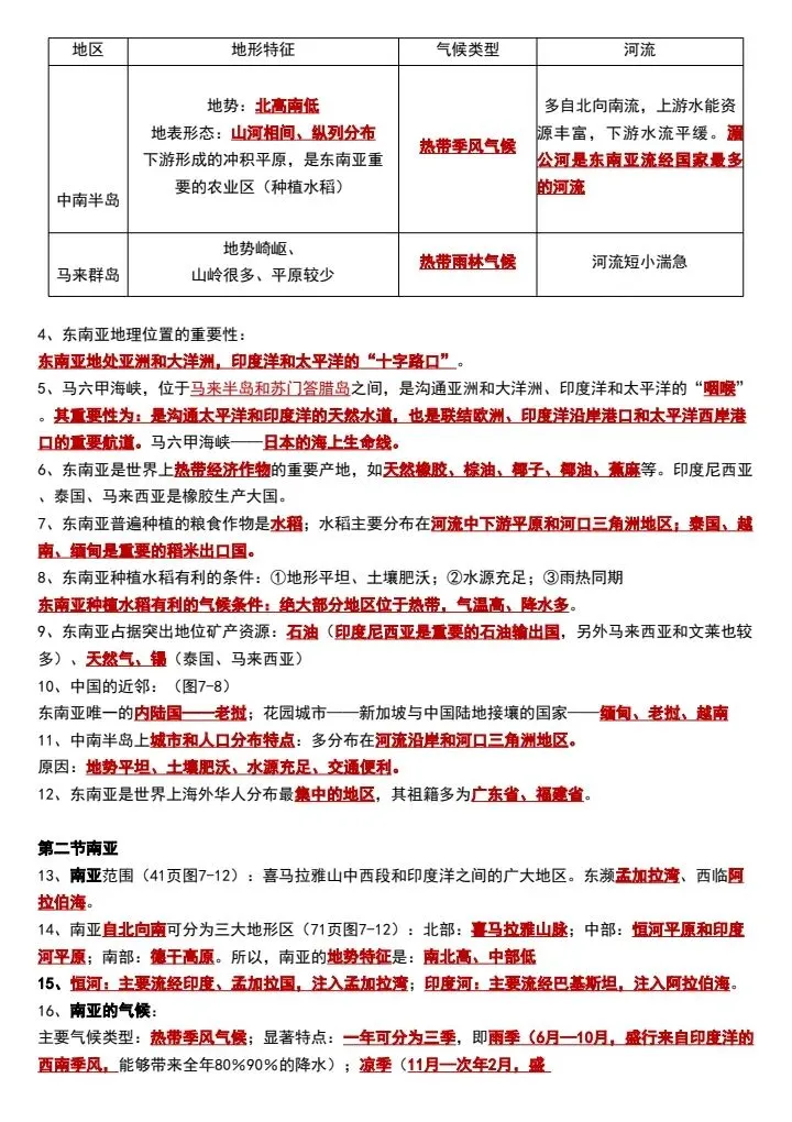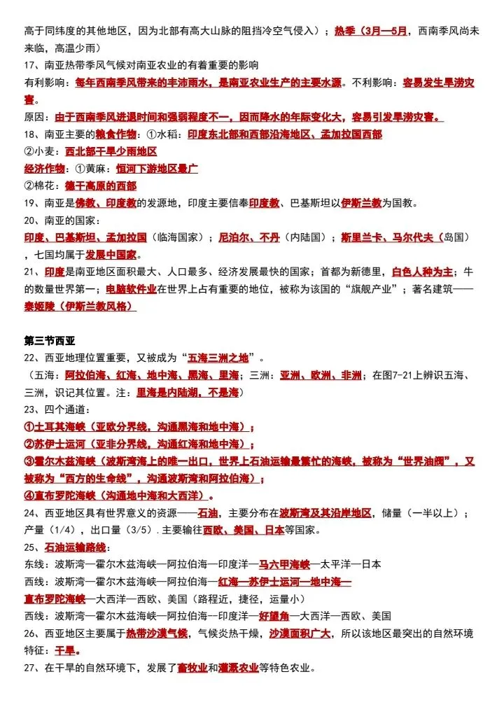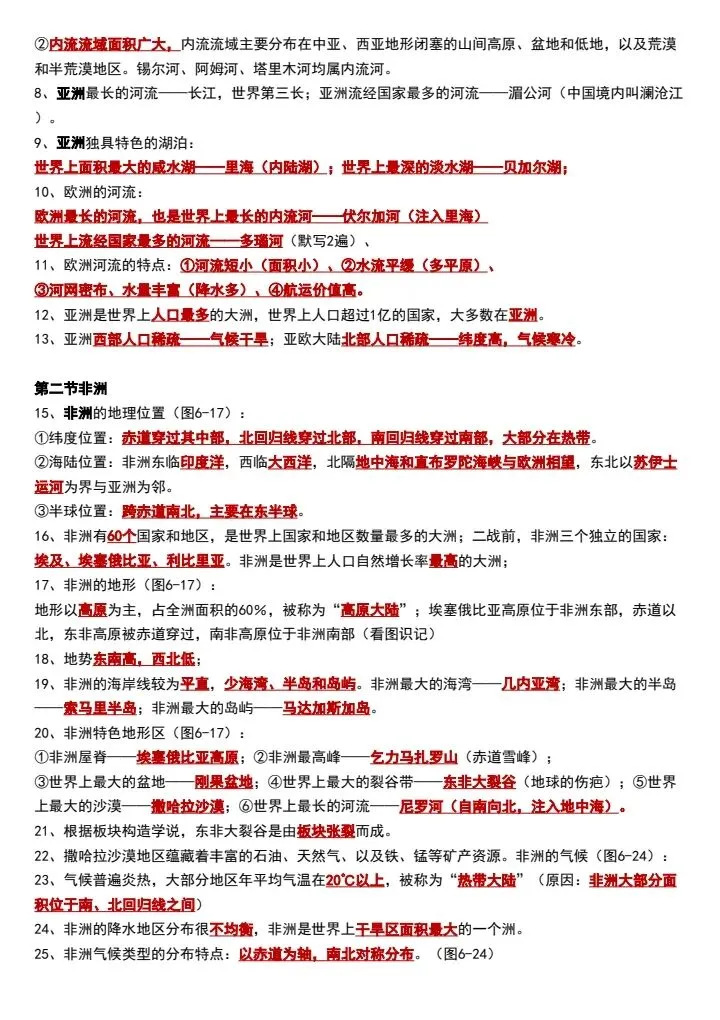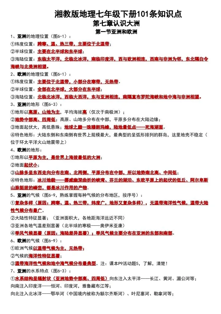 湘教版地理七年级下册101条知识点(完整电子版可打印)