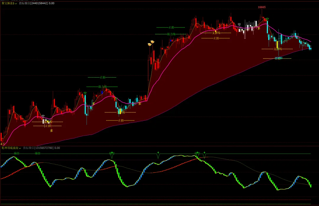 3、聚宝操盘1主图,乾坤波段顶底幅图