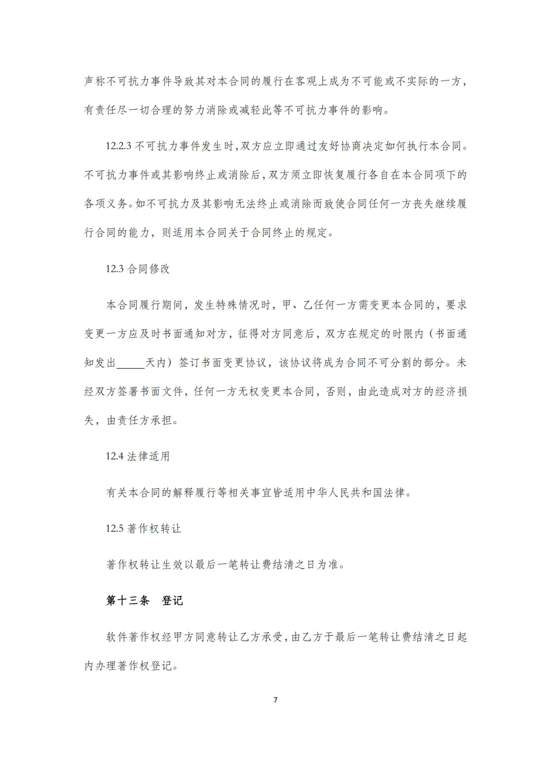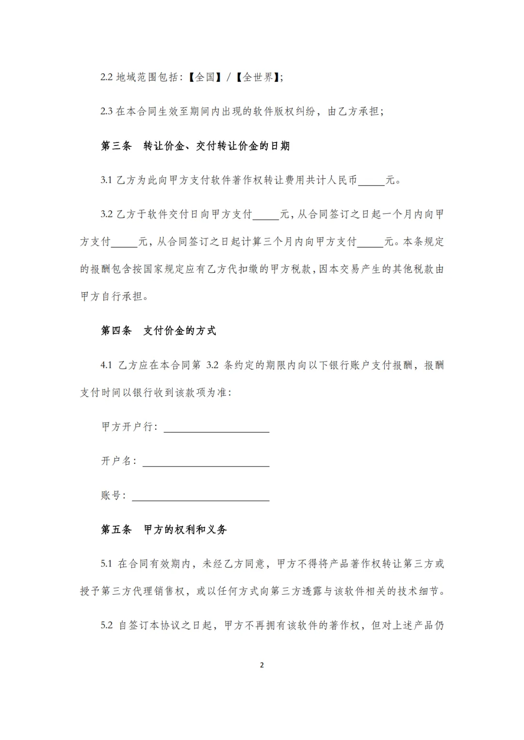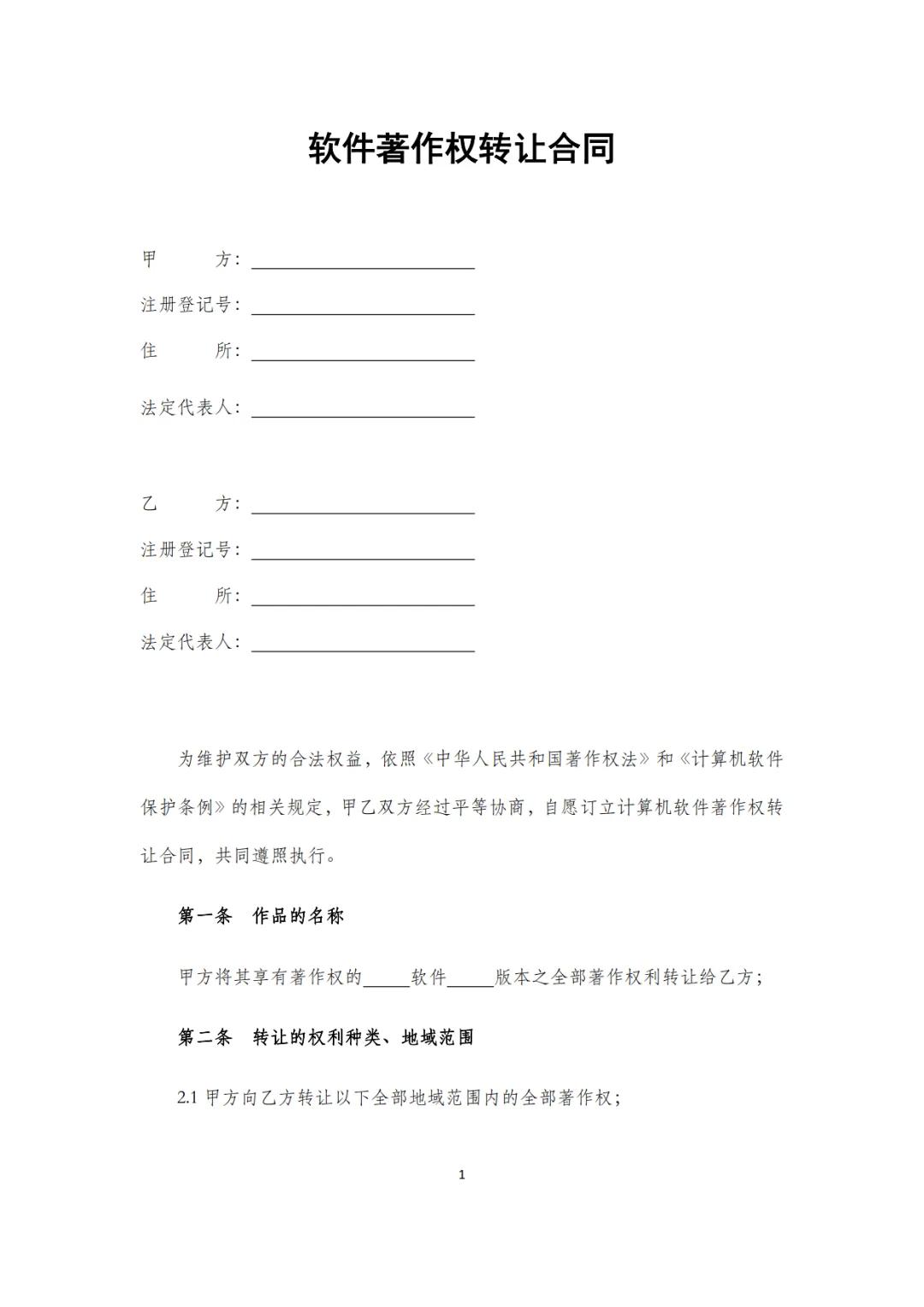软件著作权转让合同模板,WORD文档电子版,可免费下载打印