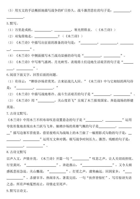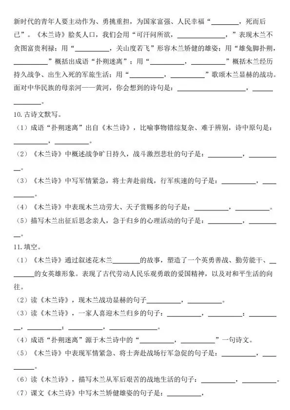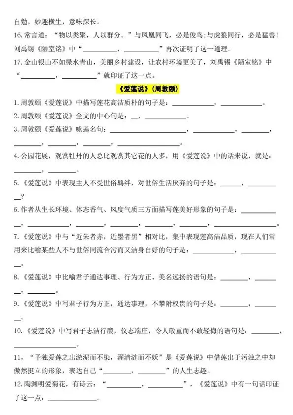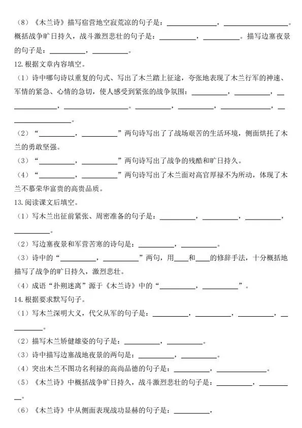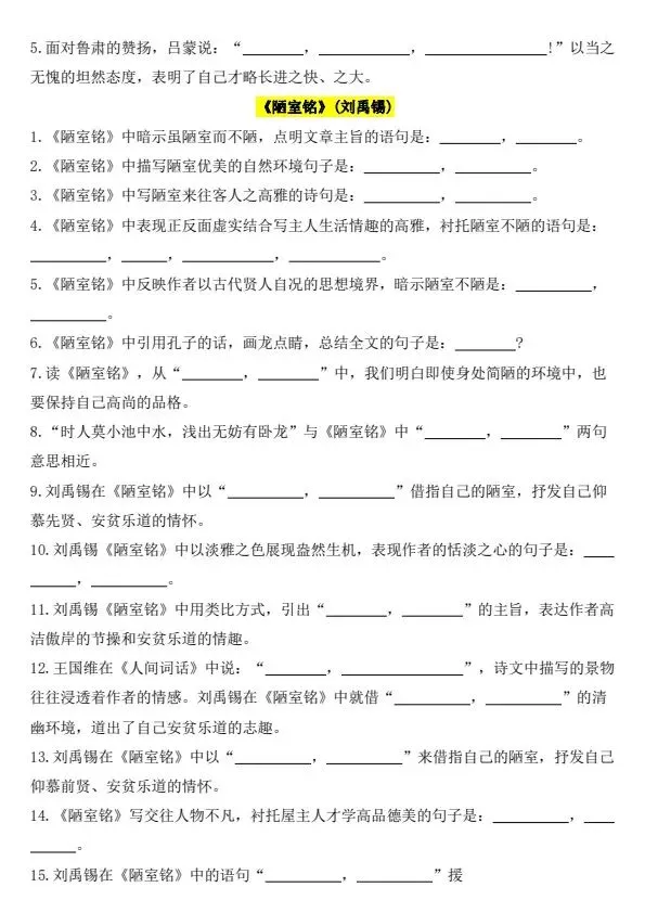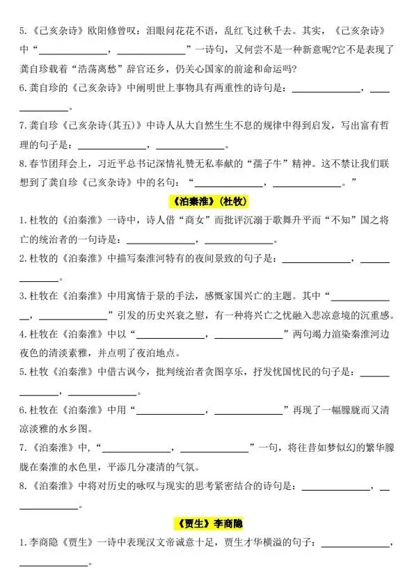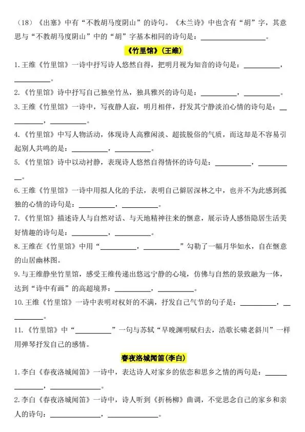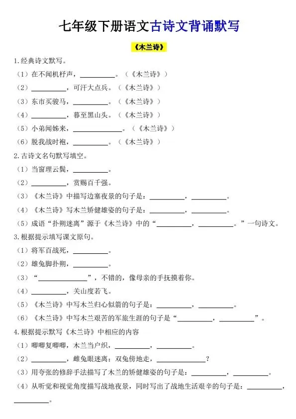 新七年级下册语文古诗文背诵默写(完整电子版可打印)