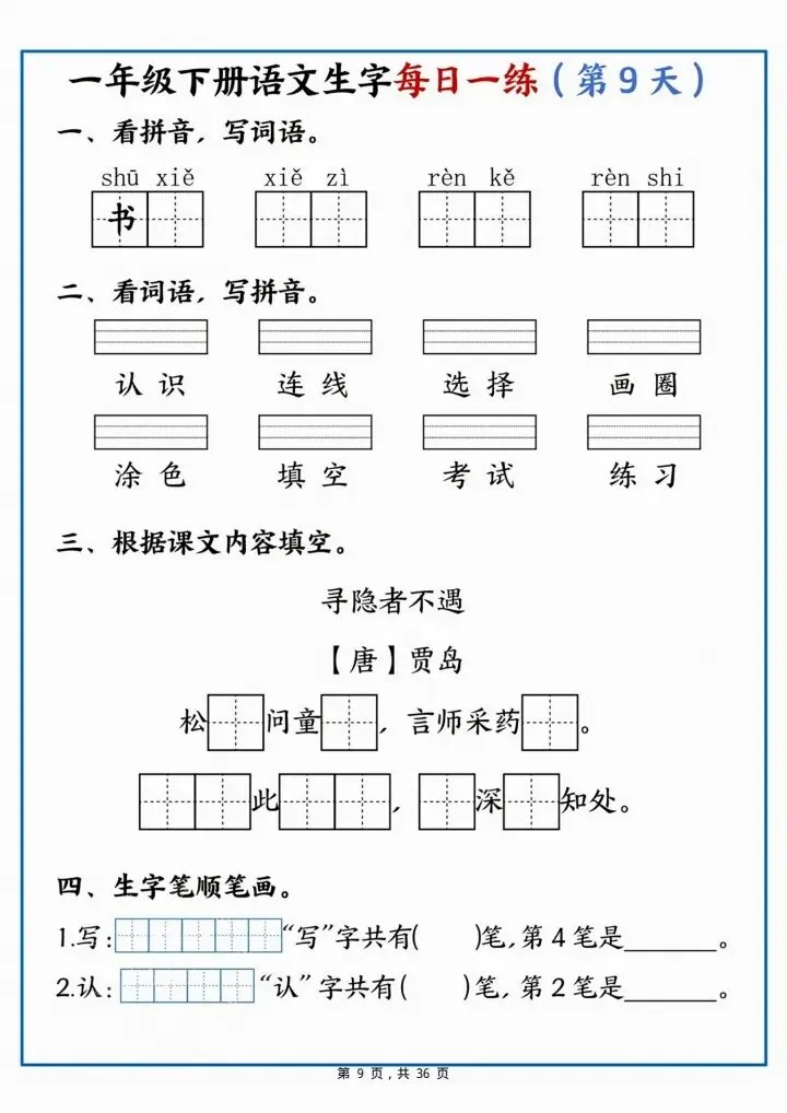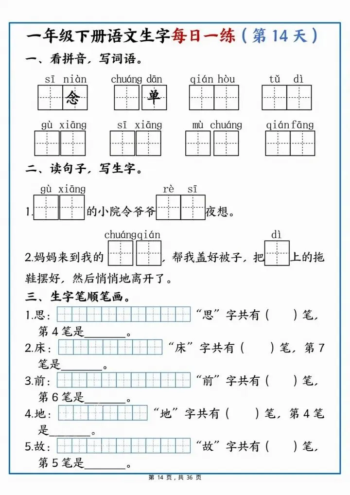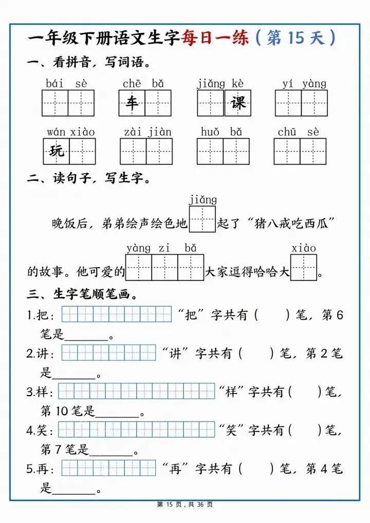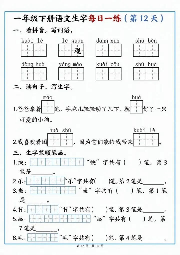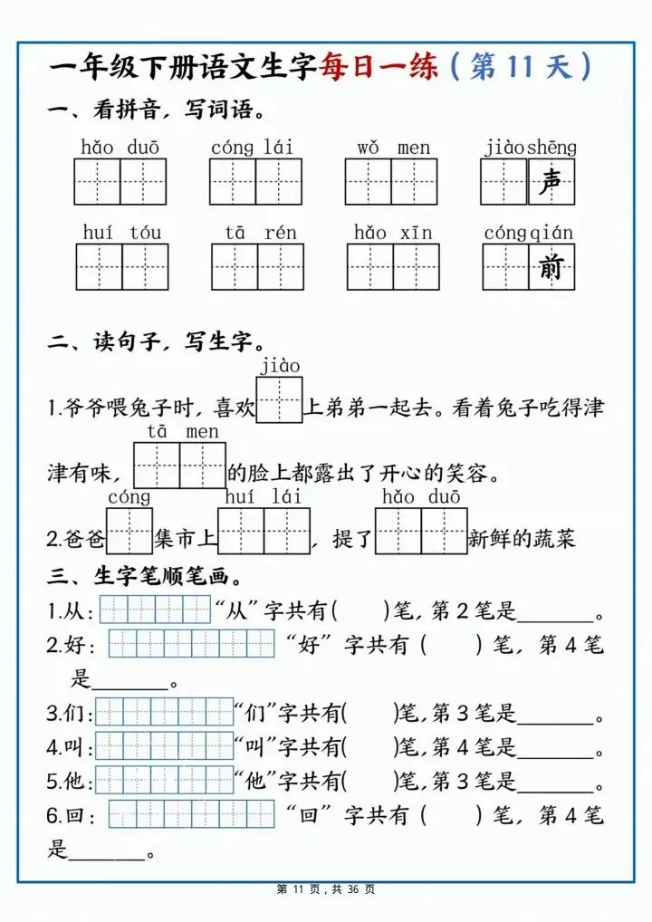 今日份分享一年级下册语文生字每日一练!这份资料已经整理成可打印版本,方便孩子随时翻看学习,建议家长先收藏,再转发给身边有需要的家庭,一起帮助孩子高效学习~
