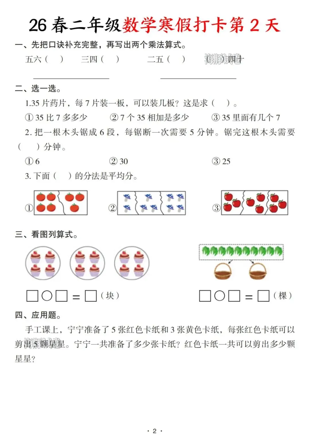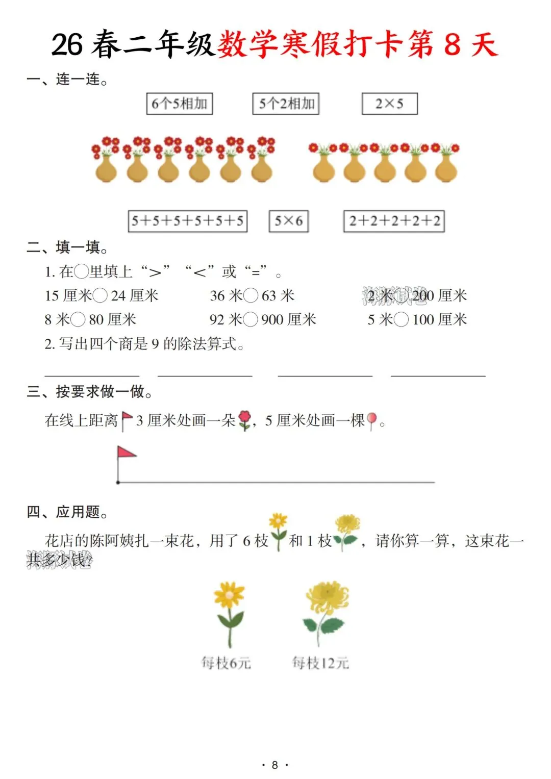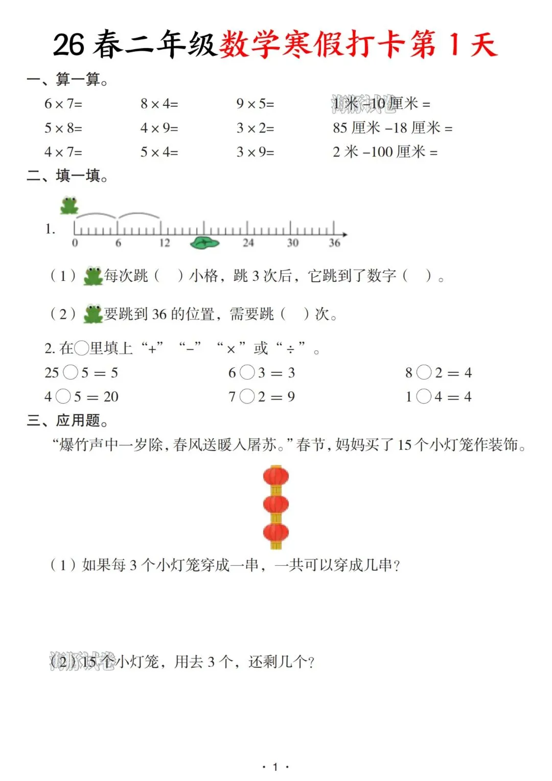 二年级数学寒假打卡15天|完整高清电子版可打印!