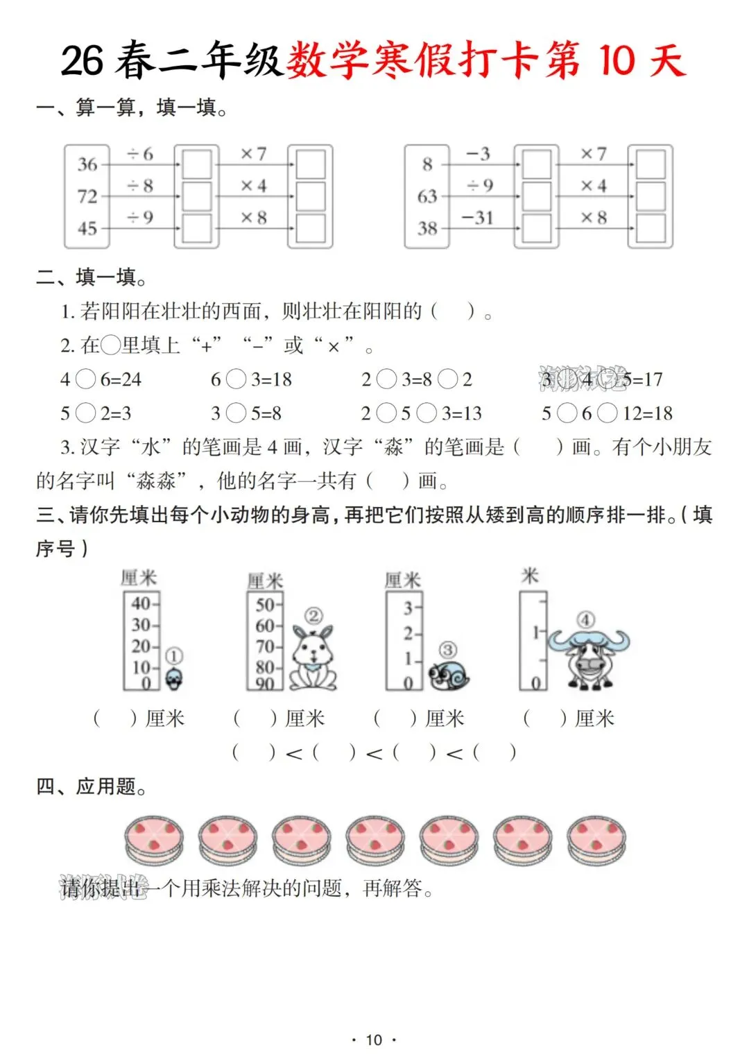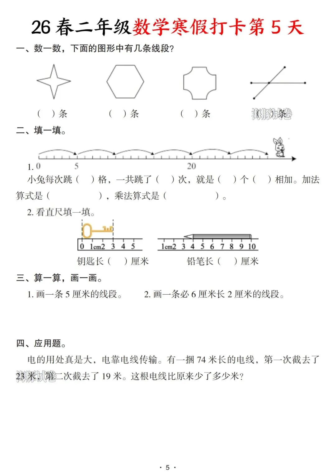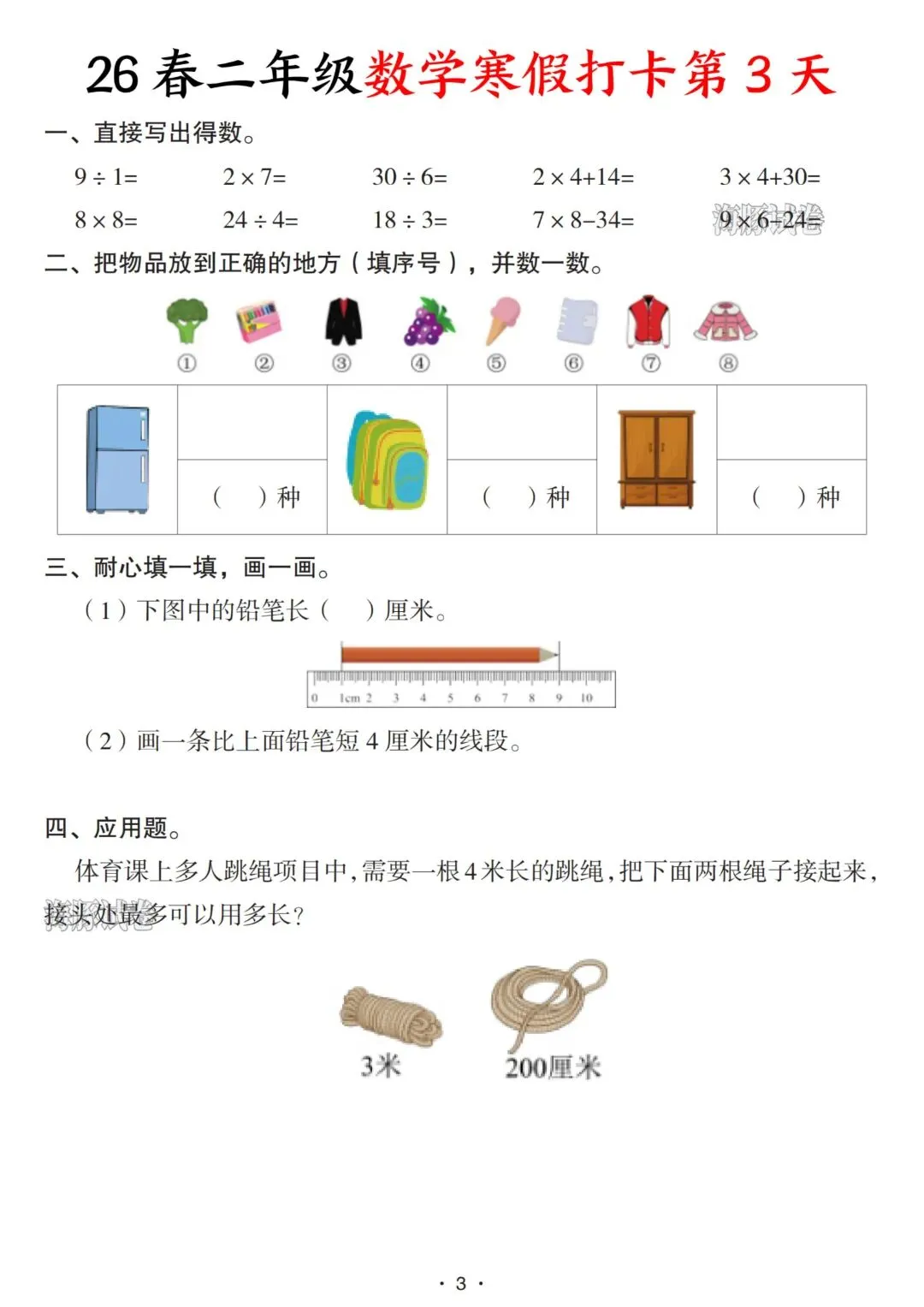 二年级数学寒假打卡15天|完整高清电子版可打印!