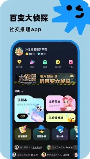 「百变大侦探」是一款线上真人角色扮演剧本杀软件,精美场景搜证,拥有众多精品的剧本,丰富的玩法,每次你都将扮演不同的角色, 都拥有独立的人物设定。