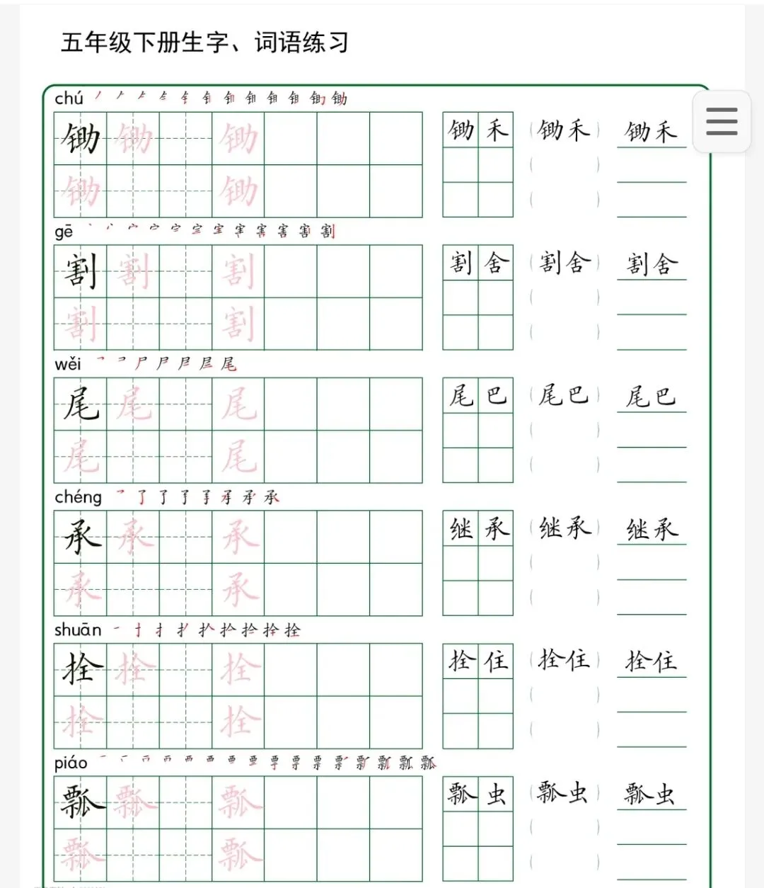 我用夸克网盘给你分享了「五年级下册生字…字(6)」,点击链接或复制整段内容,打开「夸克APP」即可获取。