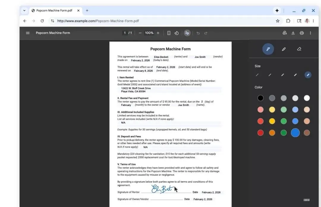 过去使用 Chrome 打开的 PDF 常常只能浏览,若要高亮、添加注释或填写表单,需要额外下载到本地再用其他软件处理。Chrome 这次把 PDF 批注功能内置进来,用户可以直接在浏览器中完成以下操作: