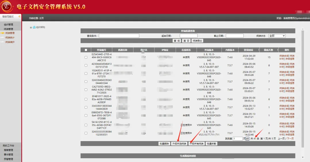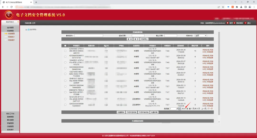点击【终端管理】,可以看到所有安装了亿赛通客户端的机器。