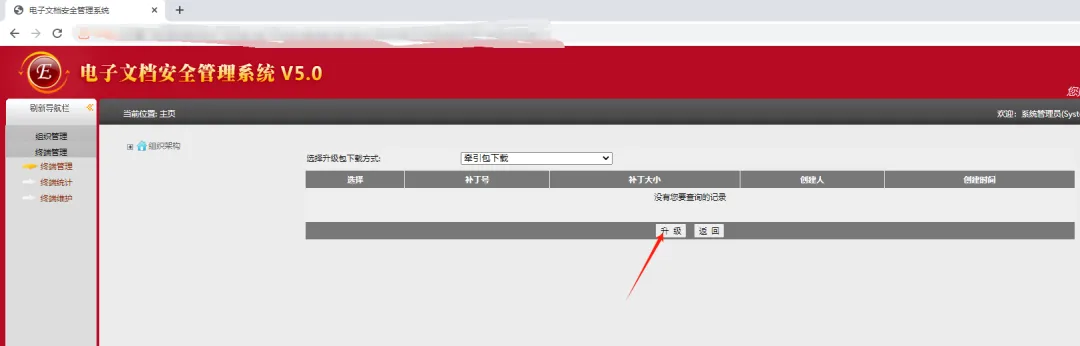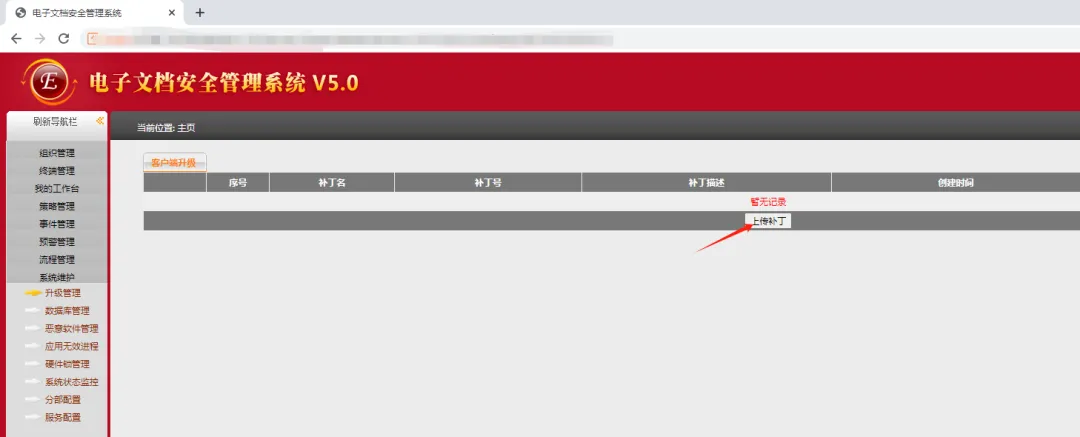 在【升级管理】功能中,可通过”上传补丁”功能上传维权马