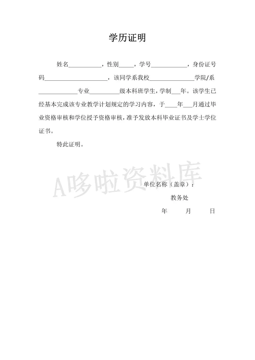 学历证明模板(word电子版下载!)