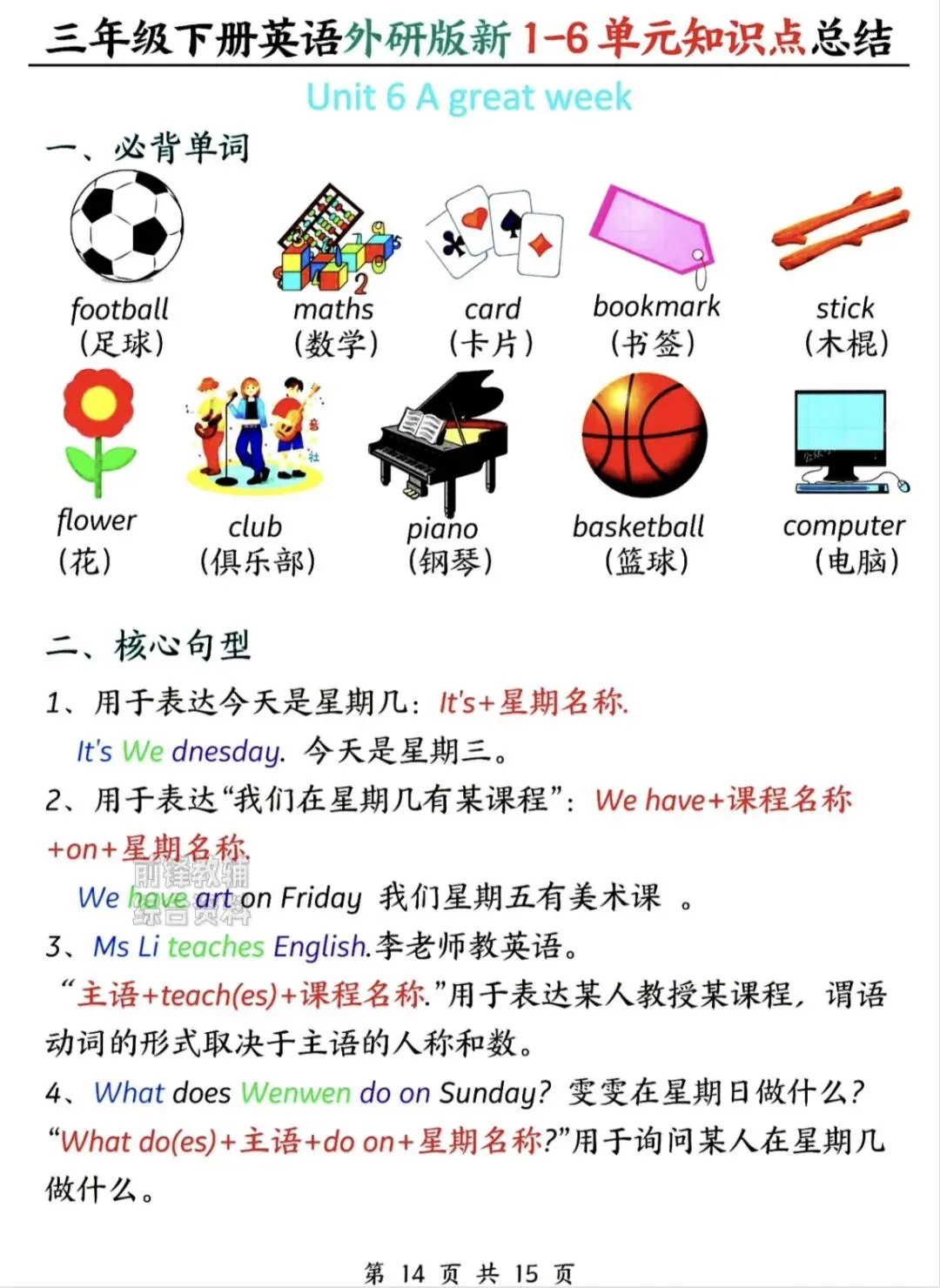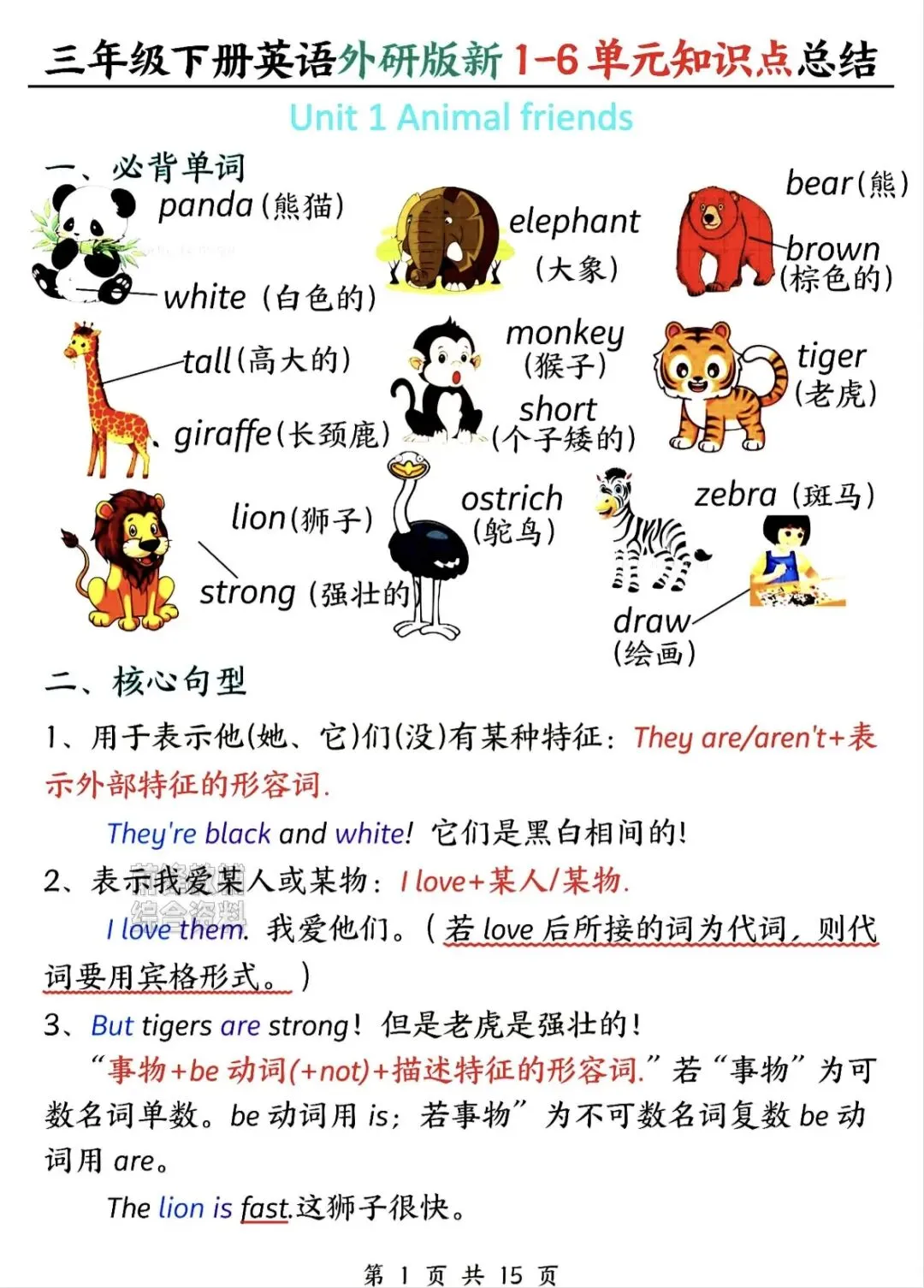 三年级下册英语外研版1-6单元知识点总结(电子版可打印)