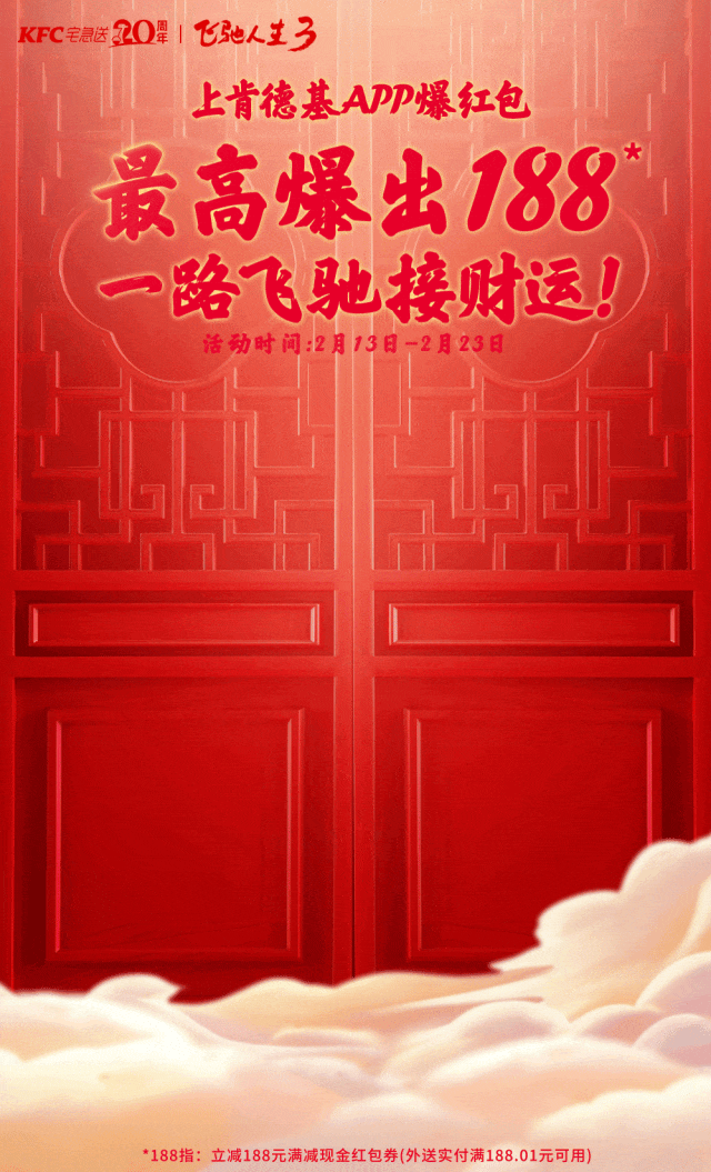 【肯德基】接财运!APP外送爆红包最高188