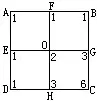 仔细观察,可发现各交点处的数字之间的关系,如O点的2等于F点和E点的数字相加之和,即1+1=2,又如,C点的6等于G点和H点的数字相加之和,即3+3=6。