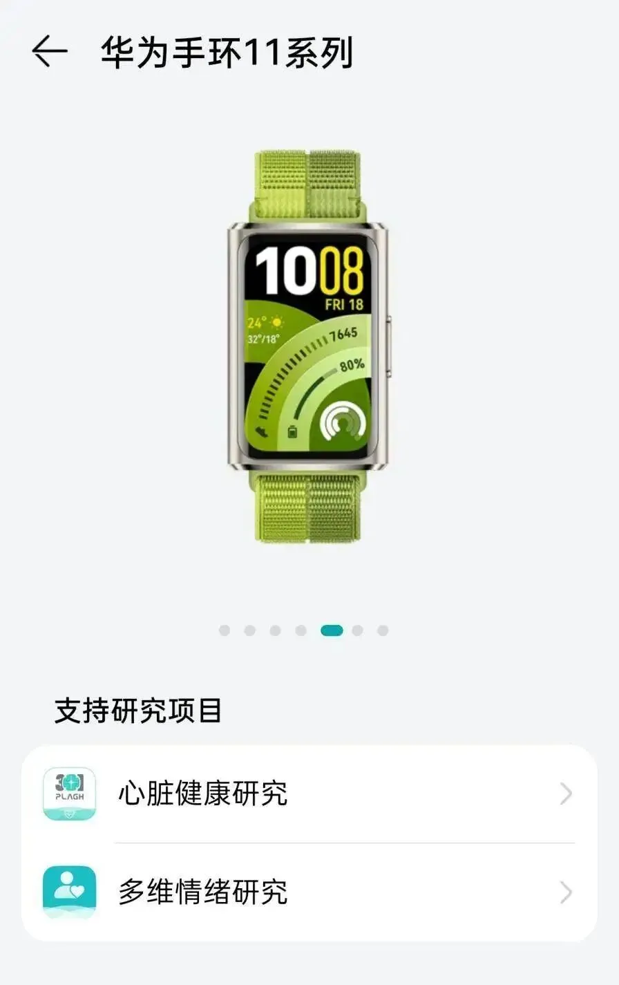 相关页面还显示,全新的华为手环 11 系列支持“心脏健康研究”和“多维情绪研究”两项研究项目。