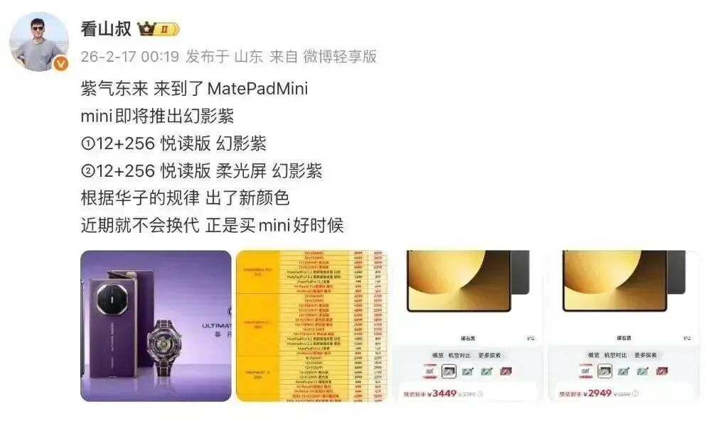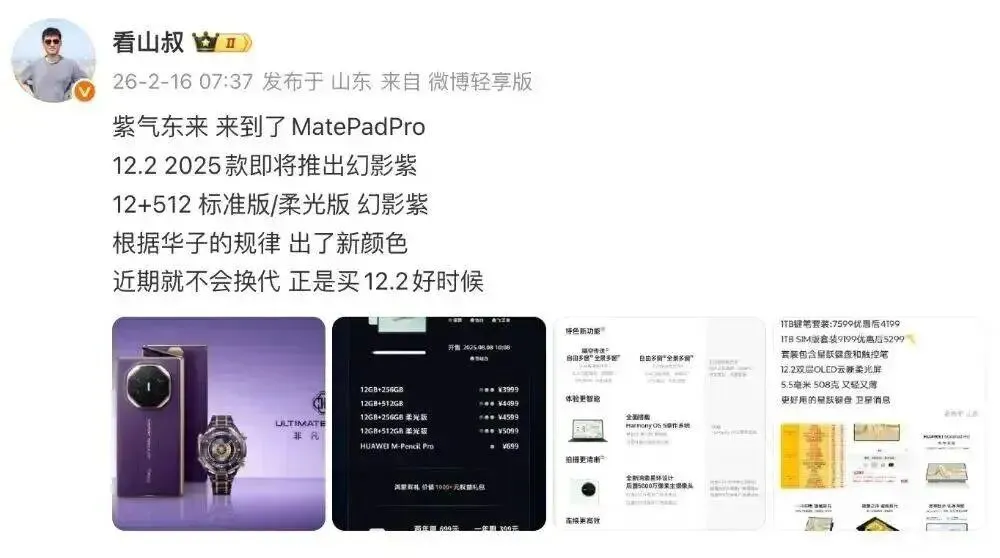 除此之外,博主@看山叔 近日的消息中还曝光了华为后续平板产品方面的新动作。