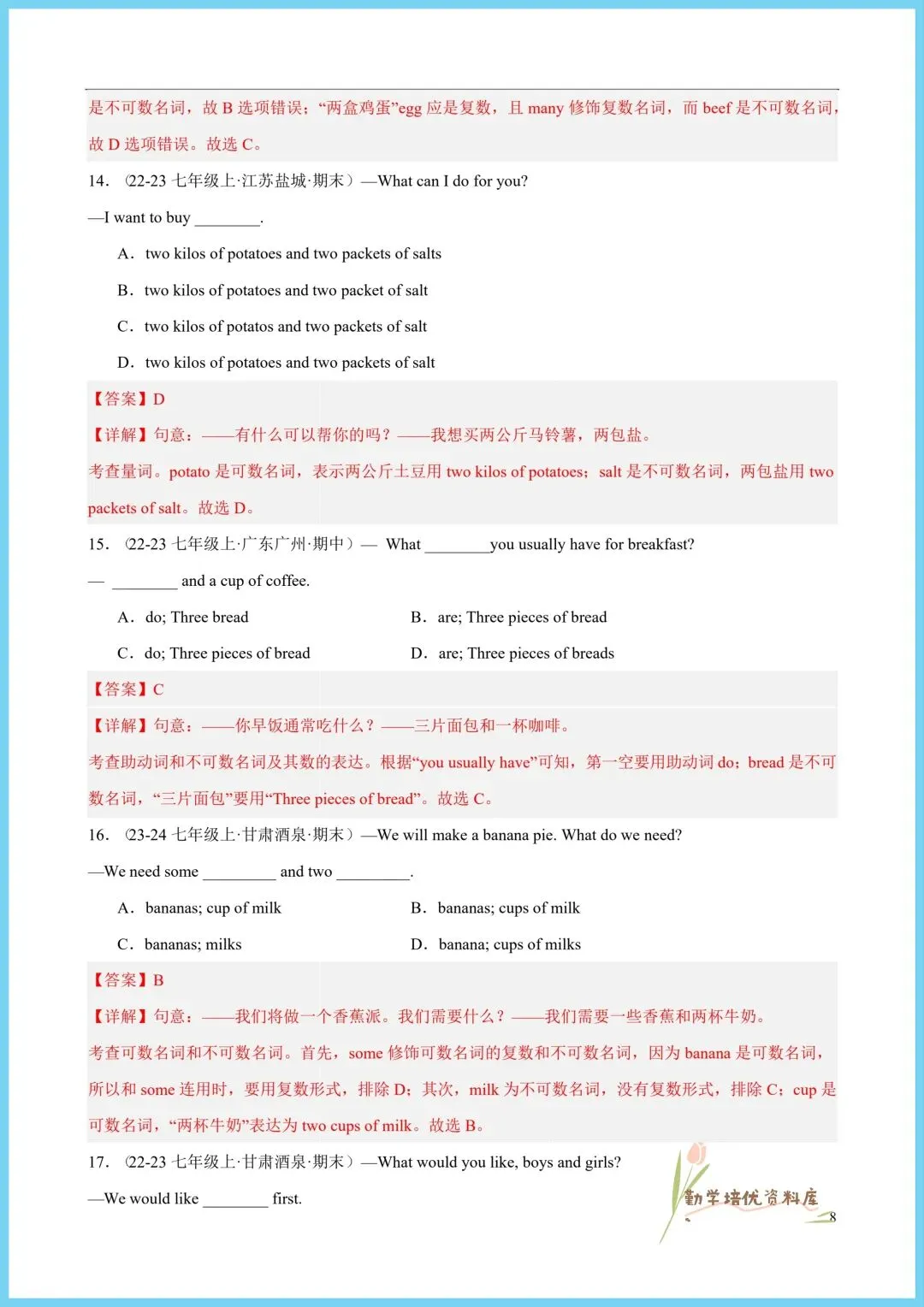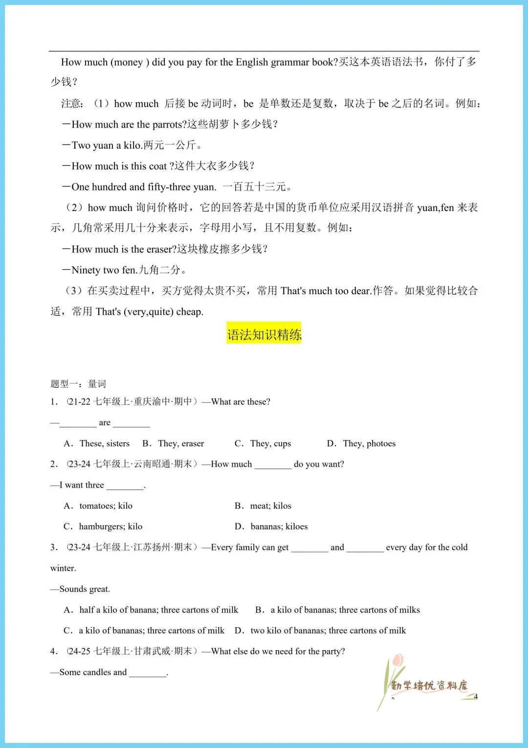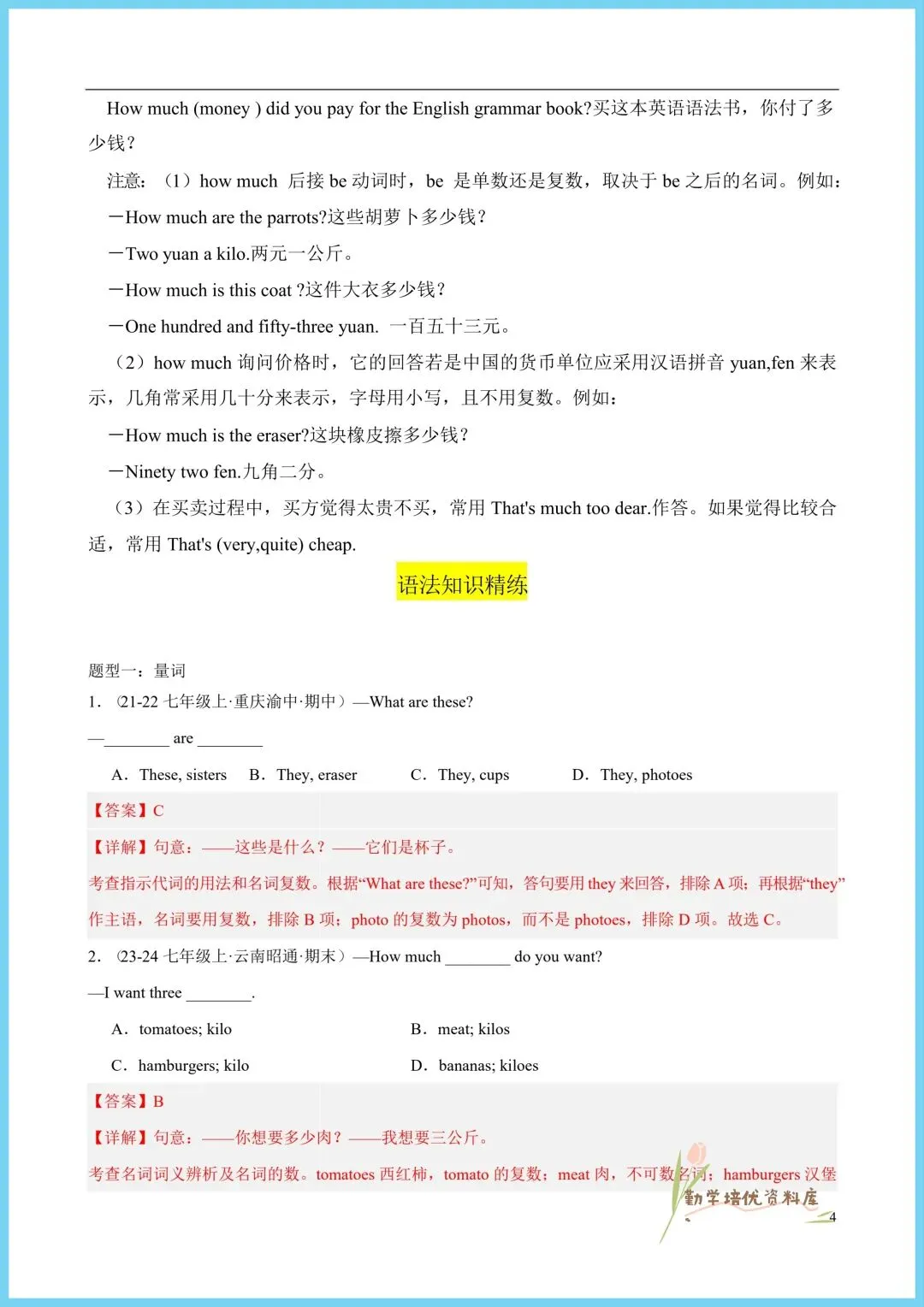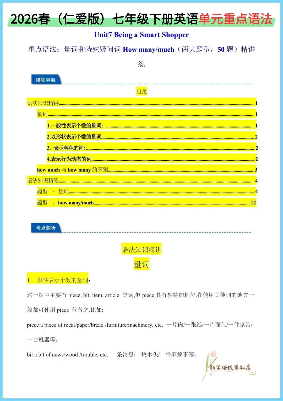 今日老师精心给大家整理了:2026新(仁爱版)七年级下册英语单元重点语法+同步语法知识精练(附答案),电子版可下载打印!