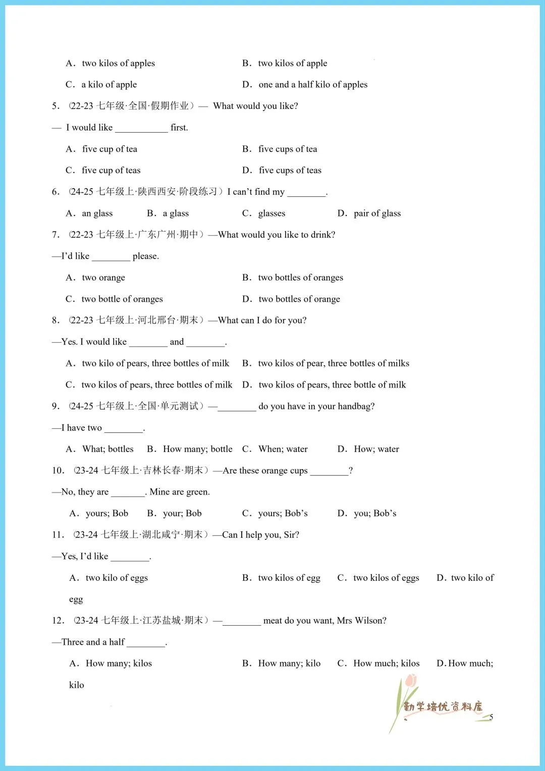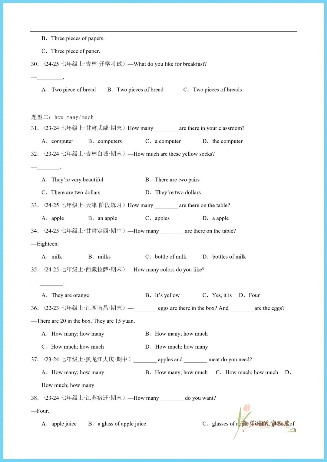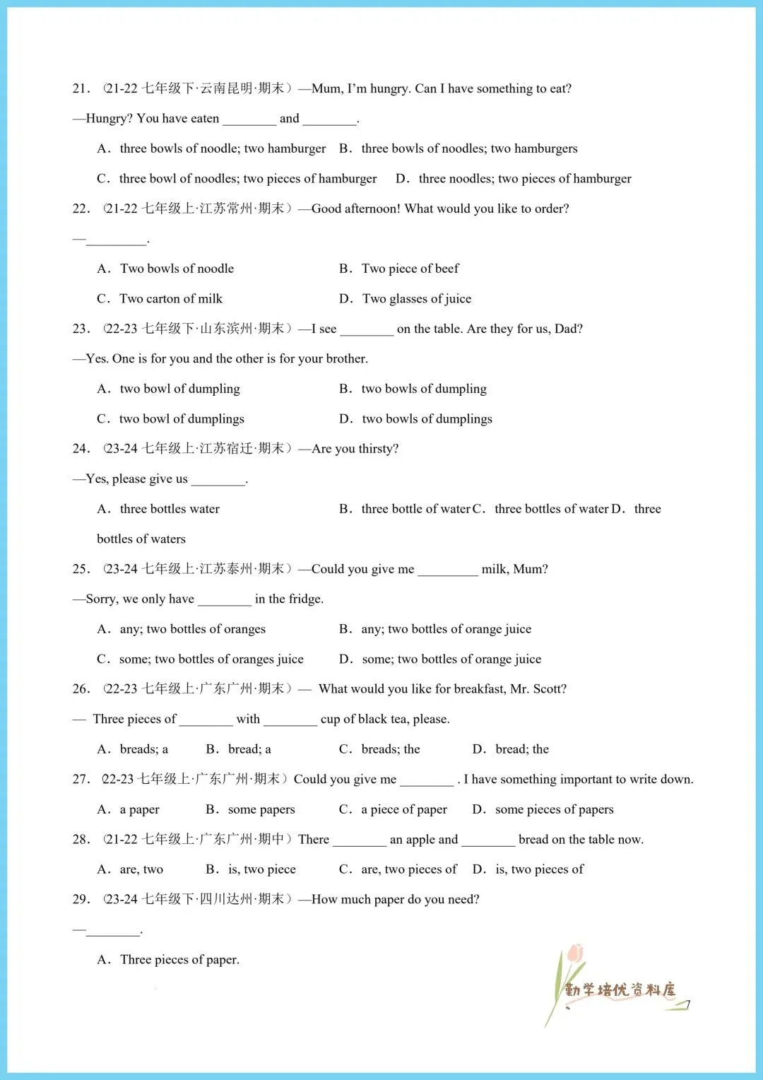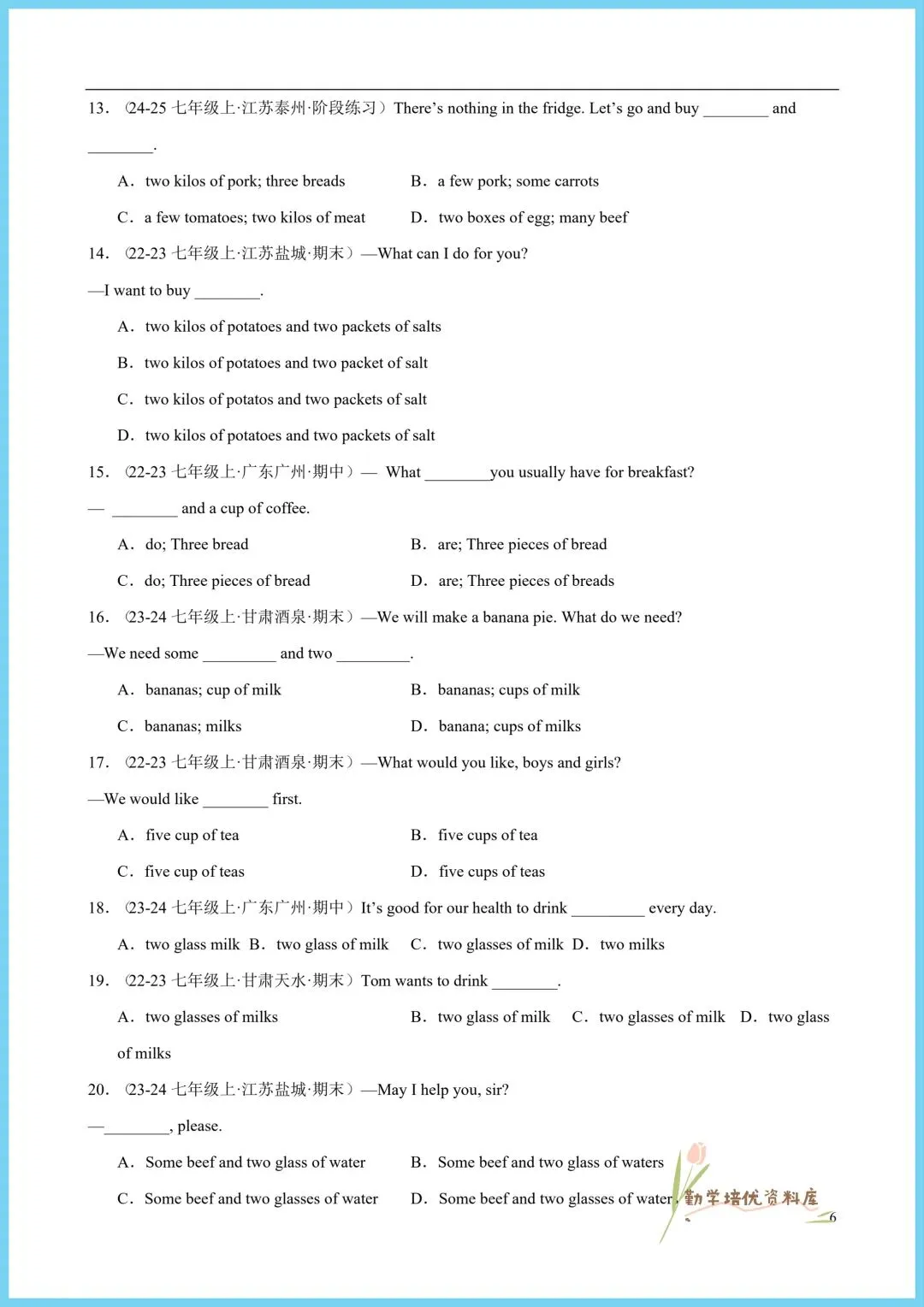 今日老师精心给大家整理了:2026新(仁爱版)七年级下册英语单元重点语法+同步语法知识精练(附答案),电子版可下载打印!