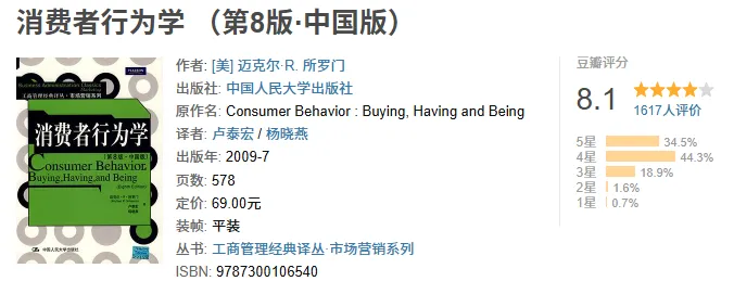《消费者行为学》pdf+epub+mobi+azw3电子书免费下载 《消费者行为学》电子版下载链接,点击文章末尾左下方“阅读原文”自动跳转。 代找电子书加微:350775395,加微备注领取电子资料可免费领取20T电子资料合集(古籍/电子书/小说/游戏/软件工具/电影/电视剧/动漫/PPT素材/教辅资料/烹饪教程/各类学习文档等电子资源)。 特别提醒:电子资料仅供个人学习使用,链接随时失效,请及时保存到个人网盘!