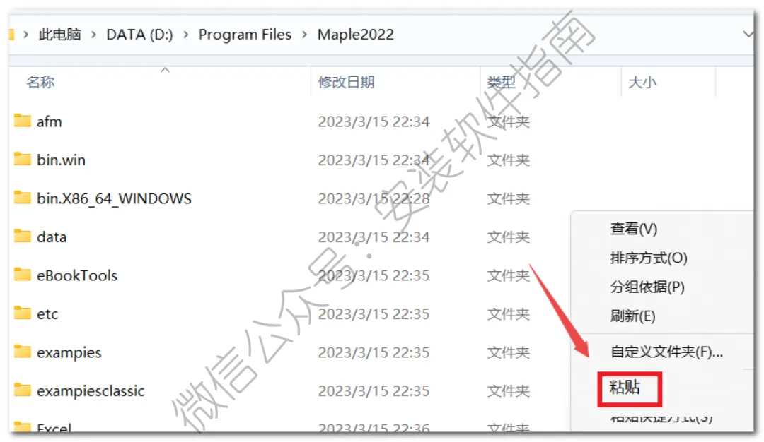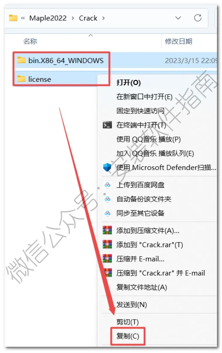13、返回之前解压的“Maple2022”文件夹,双击打开“Crack”文件夹,全选该文件夹下的全部文件,鼠标右键点击“复制”