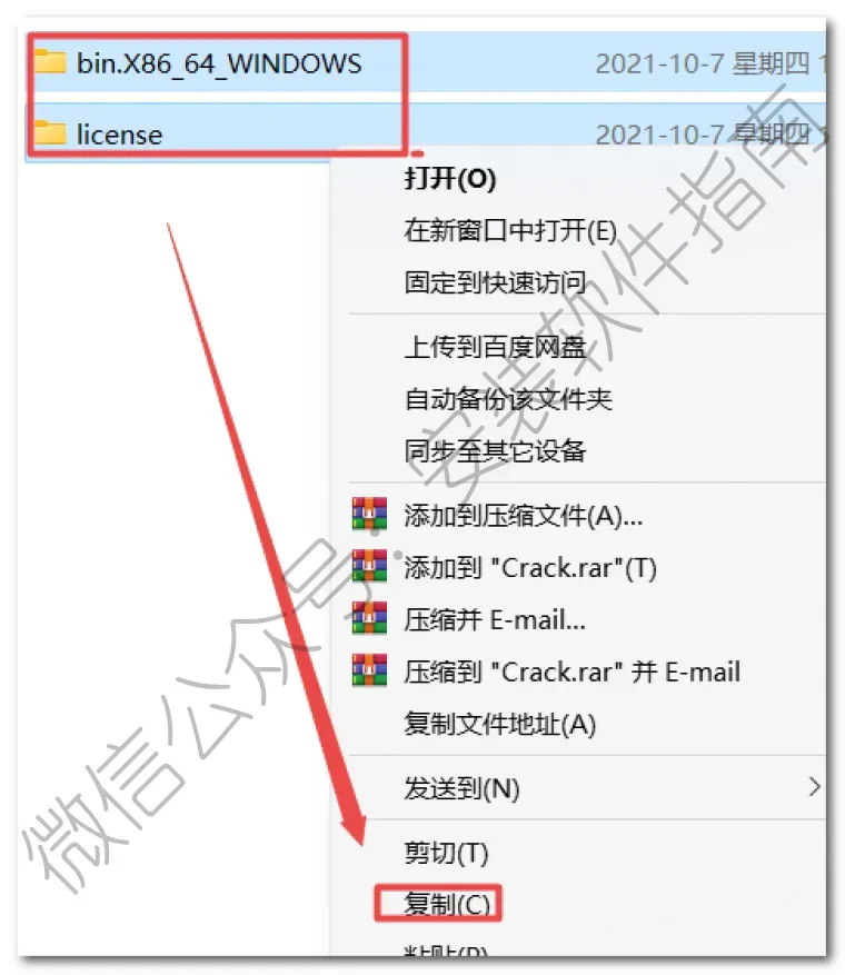 12、返回到刚开始解压出来的安装包,双击打开Crack文件夹,全选如下图文件夹,然后点复制