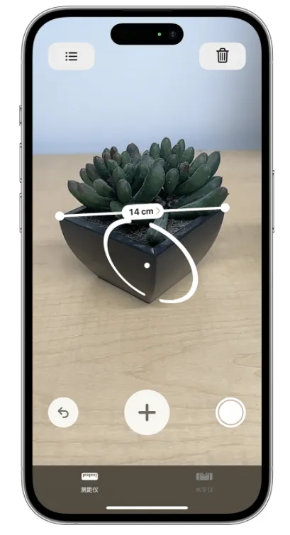 进行第一次测量后,移动你的设备,将圆点置于物体上或物体附近的另一个位置。