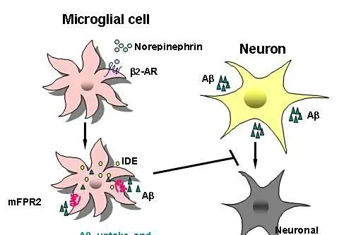 淀粉样蛋白生成途径:β-分泌酶(BACE1)首先切割APP,随后γ-分泌酶复合物在跨膜区进一步剪切,释放β-淀粉样蛋白(Aβ)。Aβ肽(尤其Aβ42)易聚集形成寡聚体和纤维沉积。