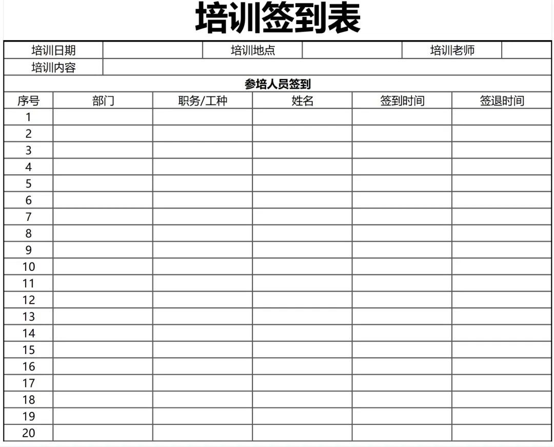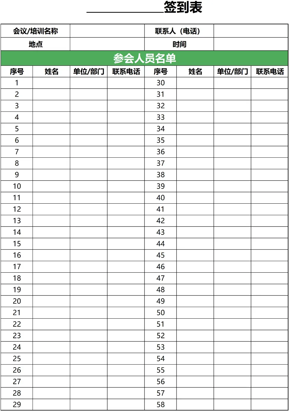 培训名单签到表格打印电子版合集(可编辑可打印)