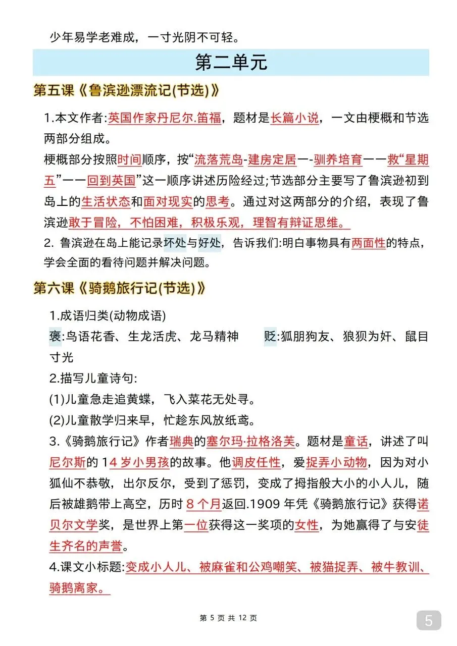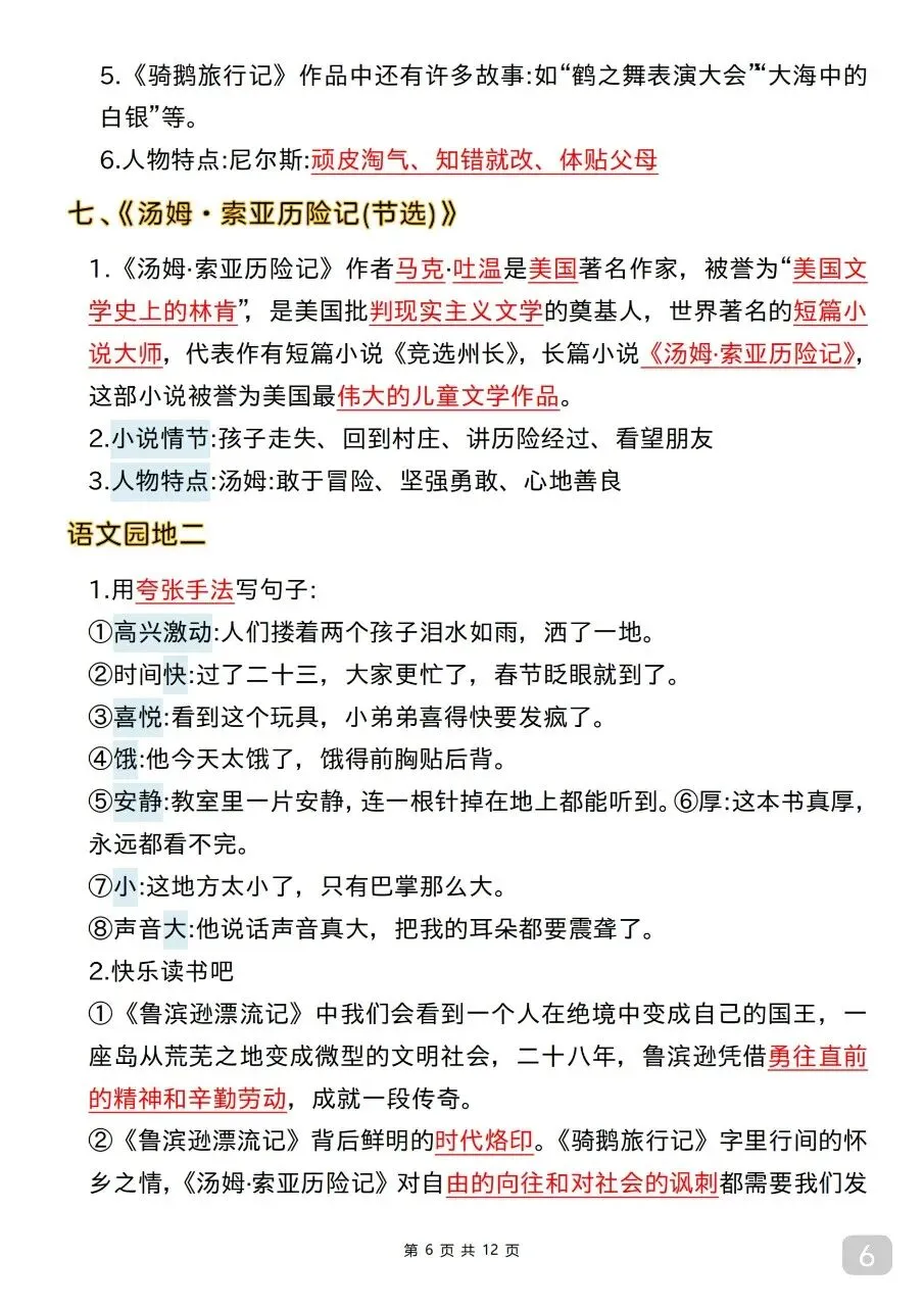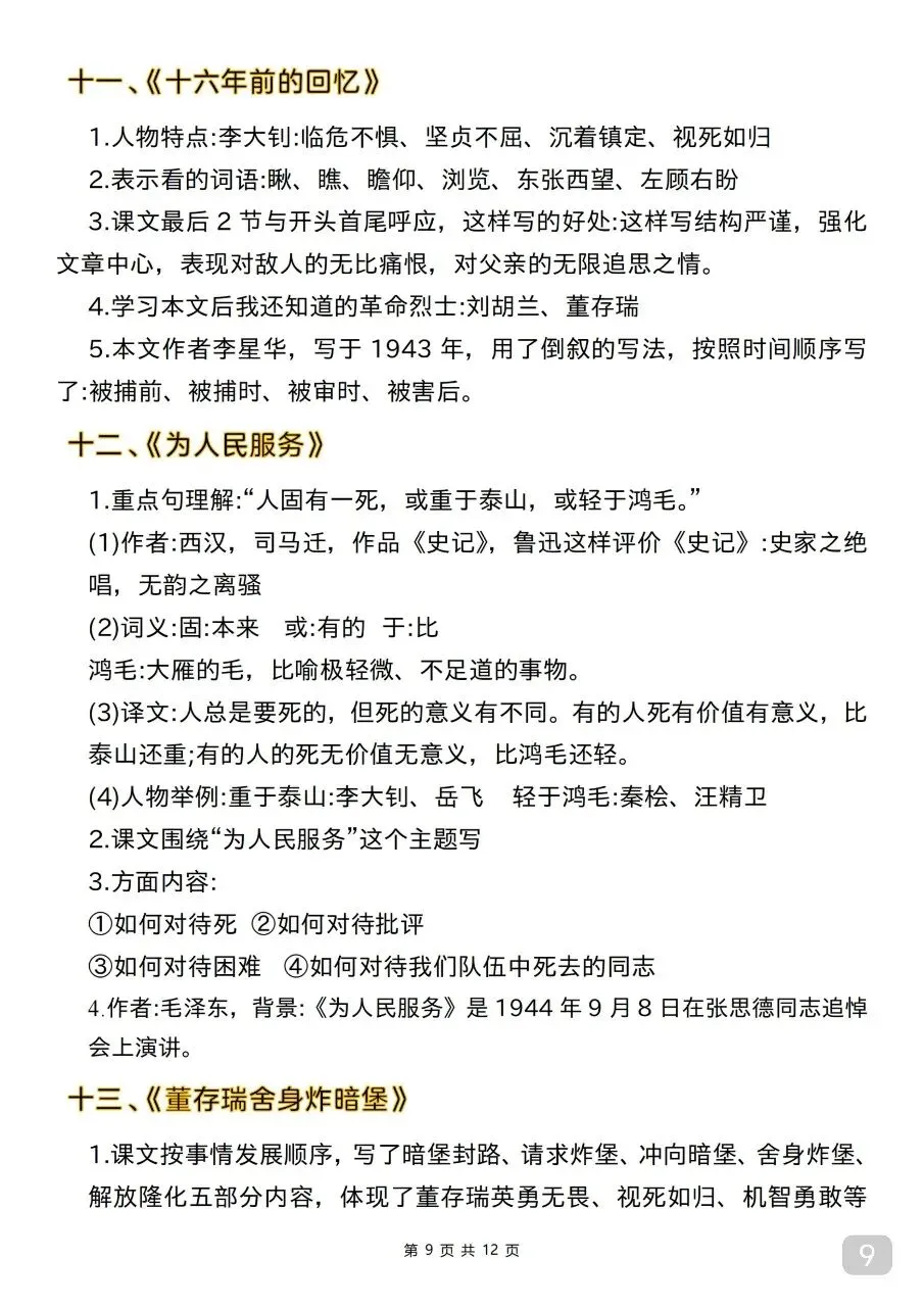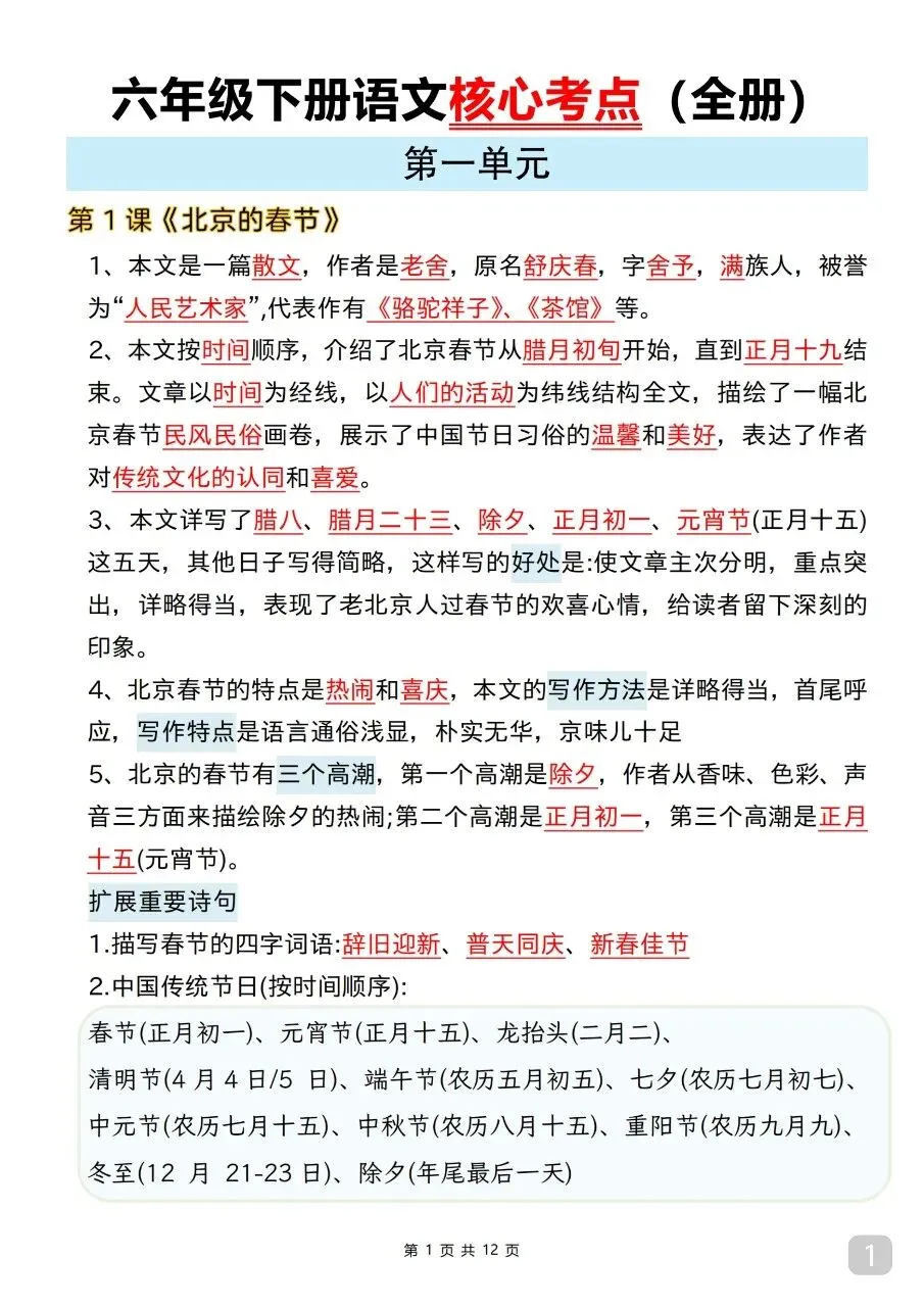 六年级(下)语文 全册课文核心考点.pdf