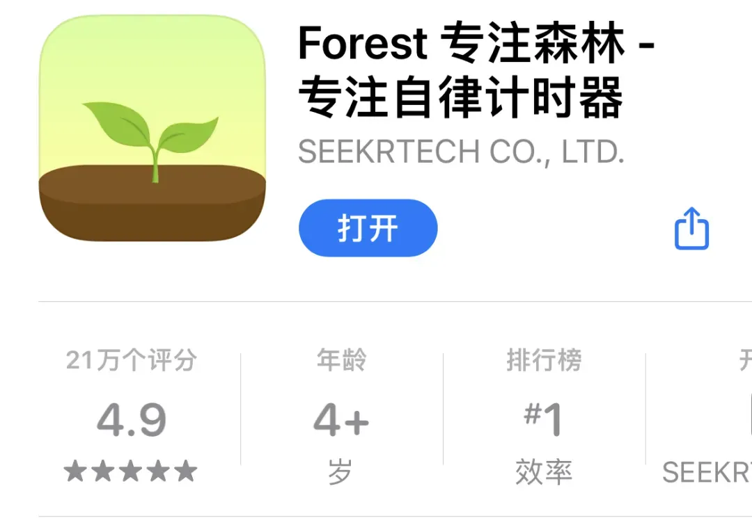 ★Forest是比较有创意的番茄钟模式专注App,将任务完成的成果奖励转换成种树。