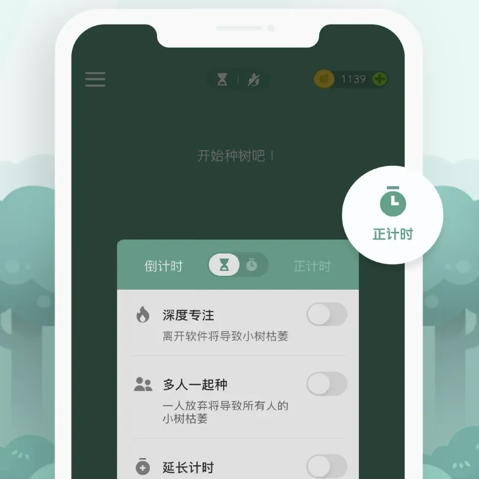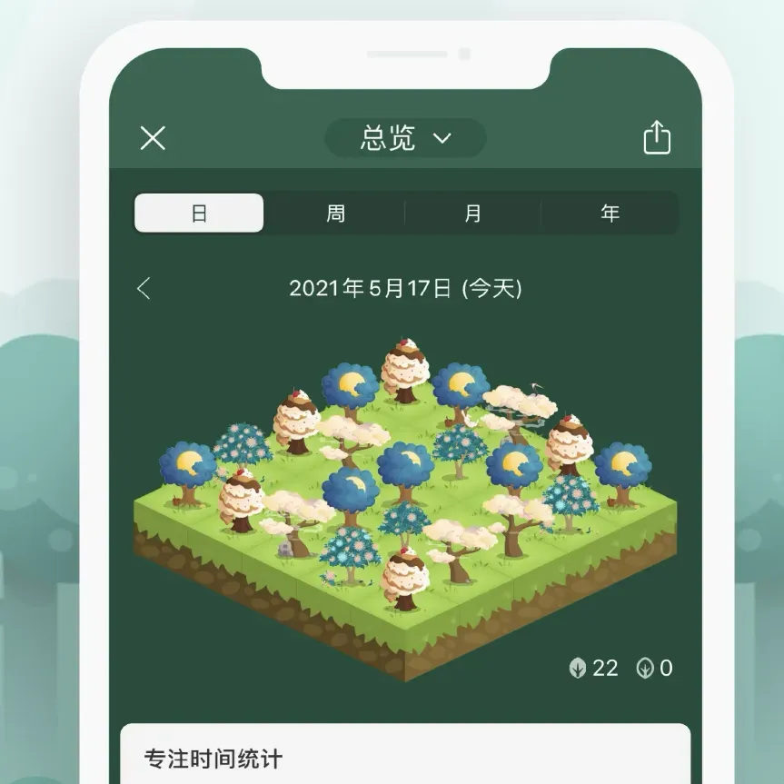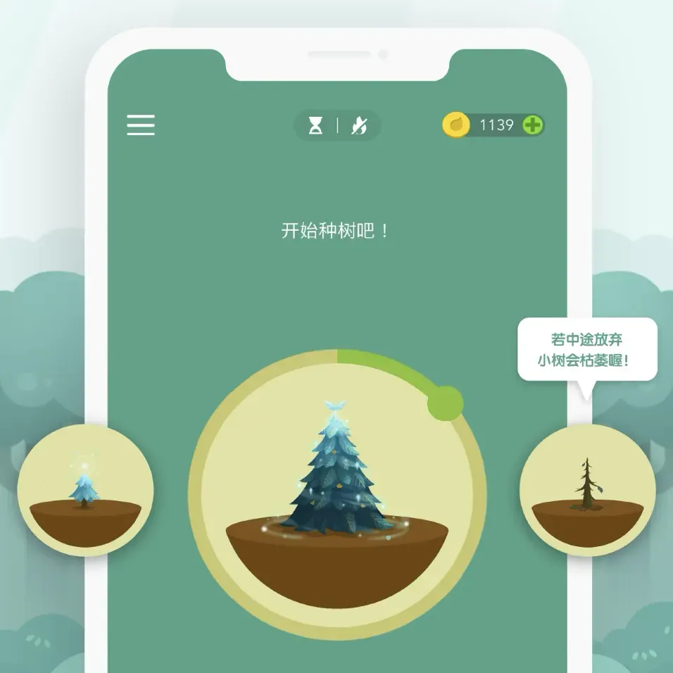 ♥有趣的是:任务完成你可以得到一片森林,如果总是切出页面玩手机,树木会枯萎!