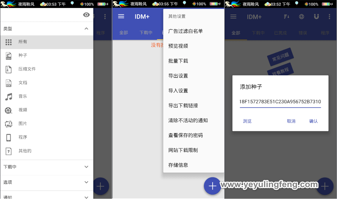 IDM众所周知是PC端一款非常强大的下载神器,IDM下载器全称Internet Download Manager是一款超强大的多线程下载工具,其无广告操作方便,界面简单深受广大电脑爱好者的喜爱,美中不足的就是PC端的IDM并不支持磁力BT下载,让一大波老司机们略感遗憾。这里老夜要告诉大家的是,安卓端的IDM+已经支持磁力BT下载了,是不是暗示着PC端也快了呢!!!此次老夜分享的是安卓IDM+专业版的石皮解付费版本,目前已经完美汉化支持简体中文。安卓版本的IDM+功能与电脑相似,都支持多线程下载,配合ES管理器进行百度高速下载那是妥妥的~