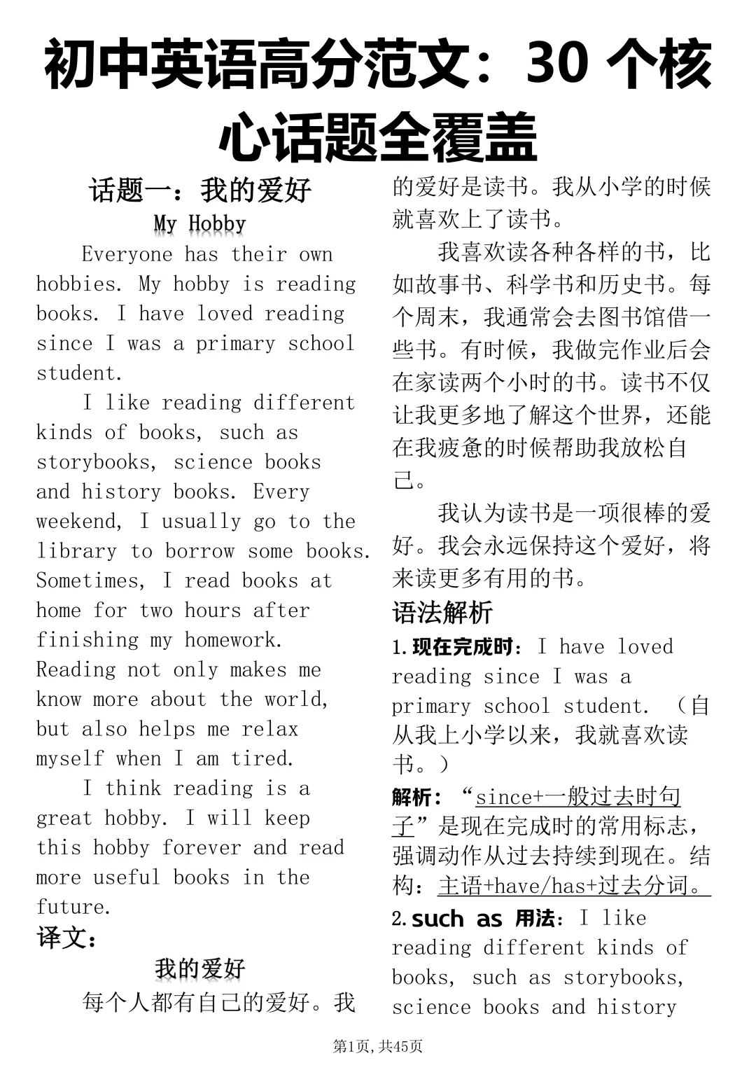 可打印的初中英语作文主题全覆盖,范本30篇(可打印)