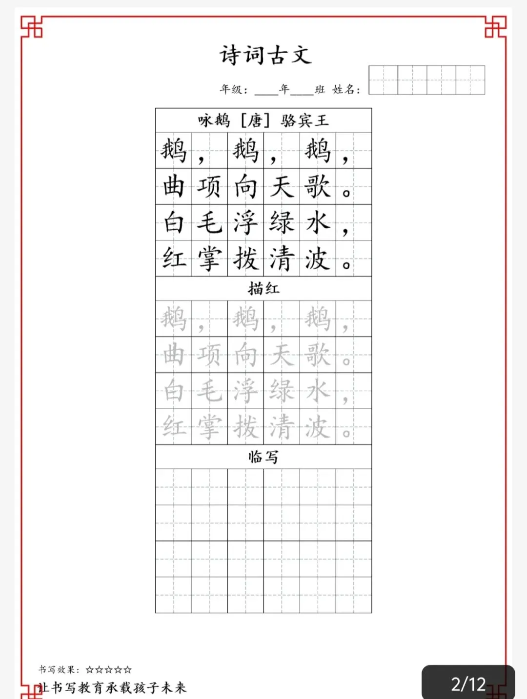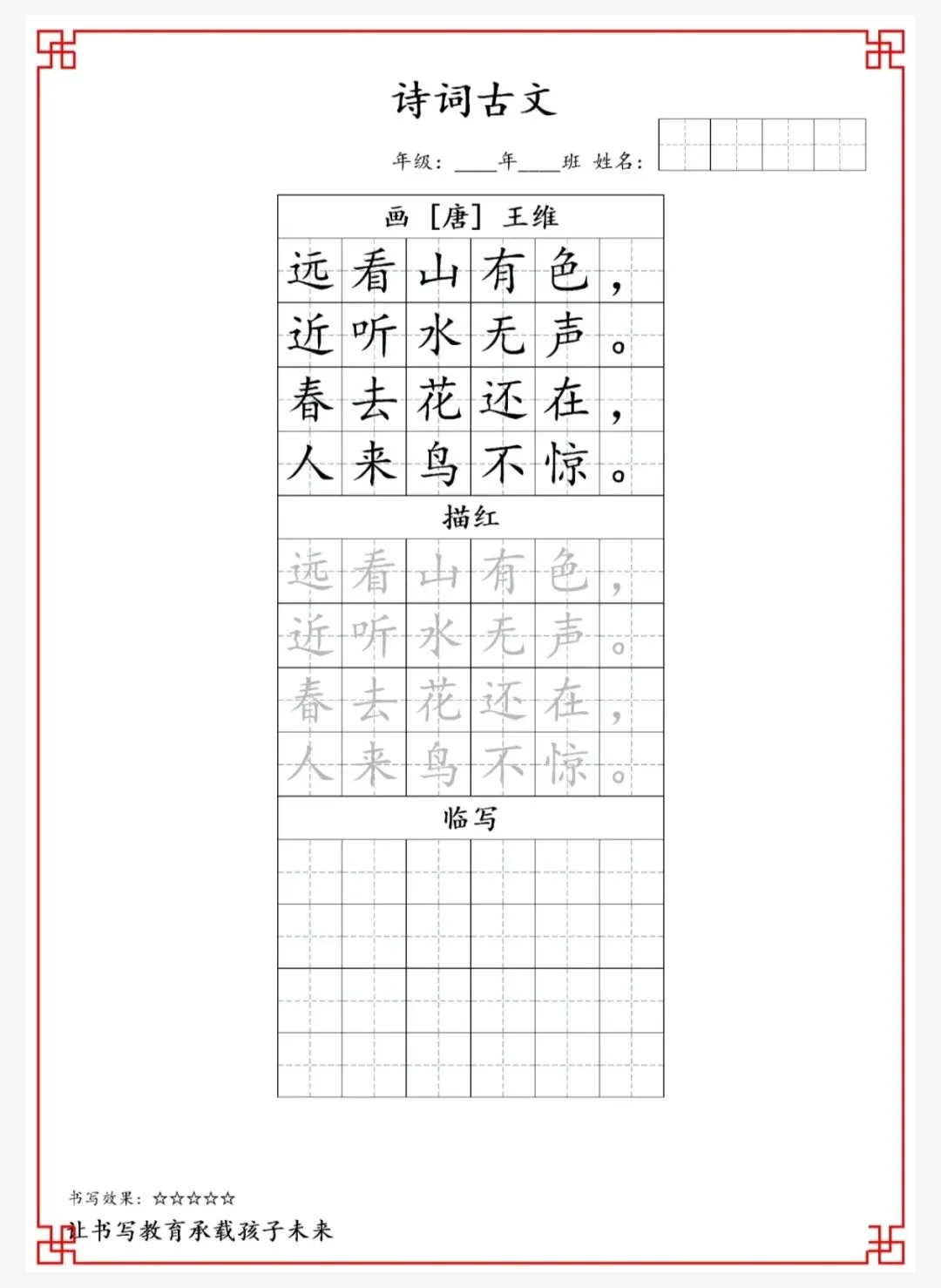 2026年最新|一年级古诗词字帖(可下载,打印)
