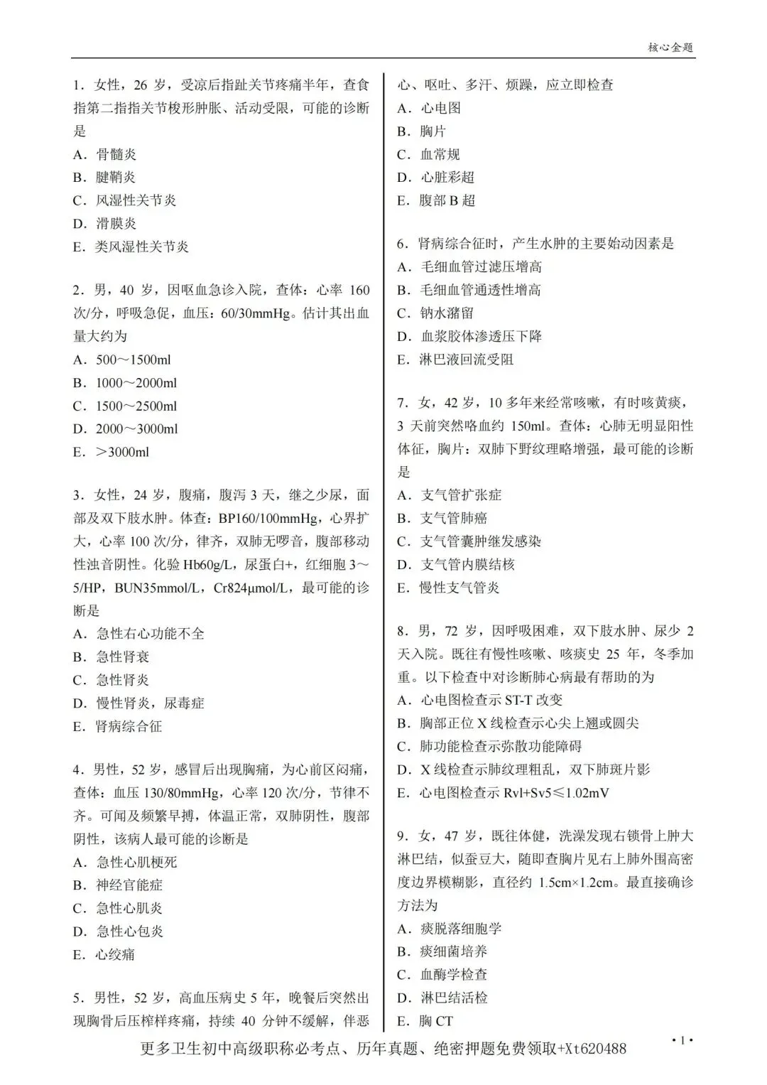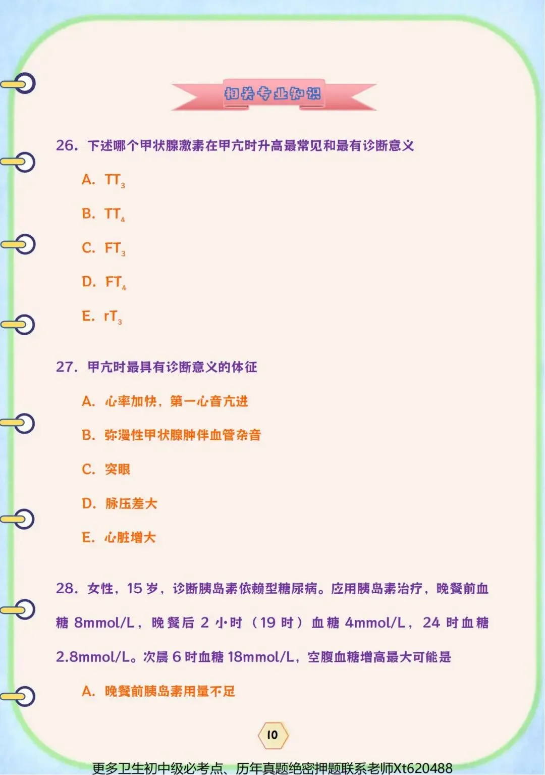 卫生初中级职称考前四页纸(目录上的专业都有,详情看目录)