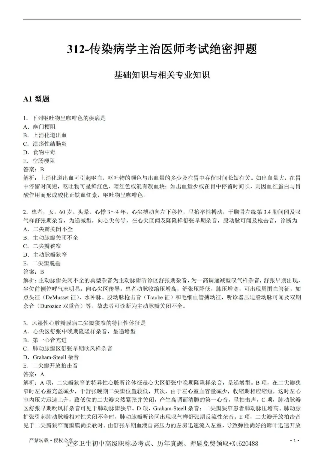 五、传染病学中级(312)历年真题【历年真题—真题是对考试考点、难度的真实反映,先过一遍历年真题,了解考情和考点,卫生职称往往会存在历年真题重现,考生重点把握】