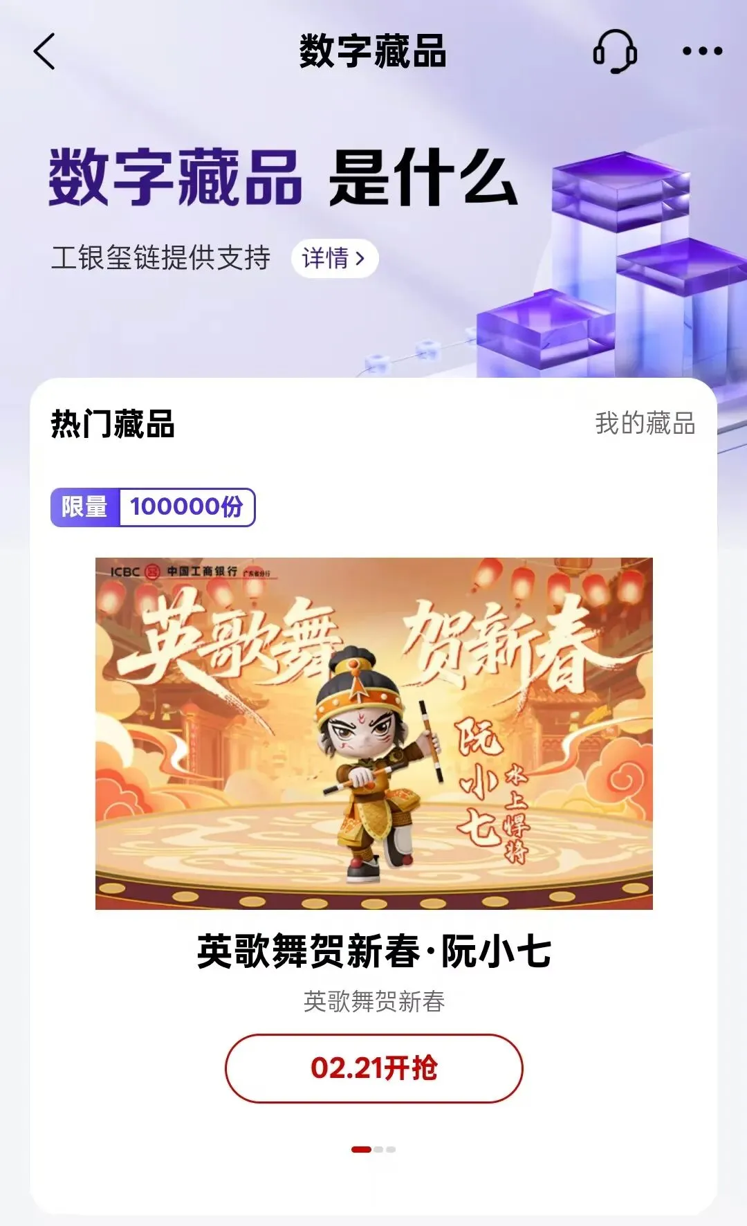 工行在区块链这事上其实挺早就开始布局了。他们有自己的联盟链叫“工银玺链”,最早用在供应链金融上。2022年手机银行8.0上线时,正式推出数字藏品馆,第一款藏品“金桂迎吉象”发了95588个。